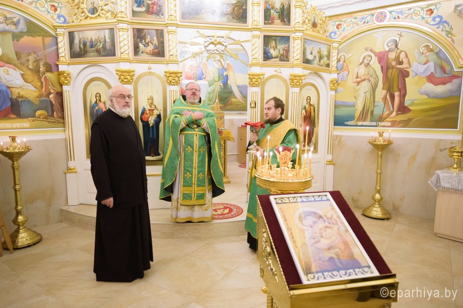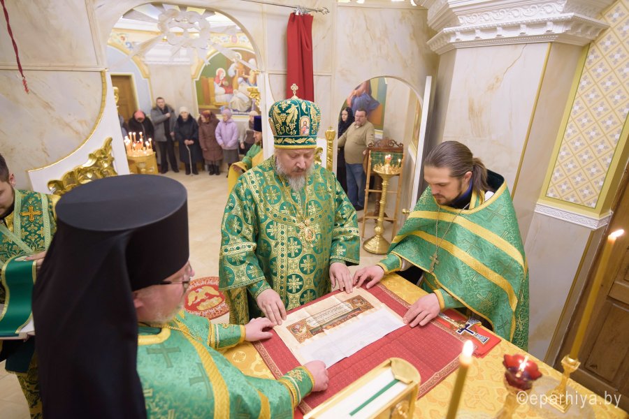 Божественную литургию в день памяти прп. Саввы Освященного 18 декабря 2018г. Высокопреосвященный Стефан в сослужении духовенства собора совершил в крестильном храме Петро-Павловского кафедрального собора г.Гомеля. По окончании богослужения Владыка поздравил причастников с принятием Святых Христовых Таин и обратился к молящимся со словами Архипастырского назидания. |