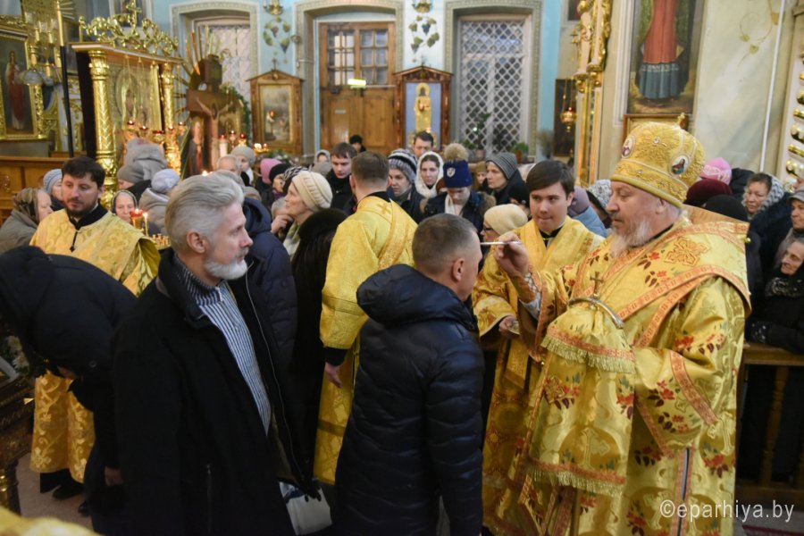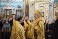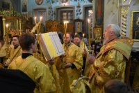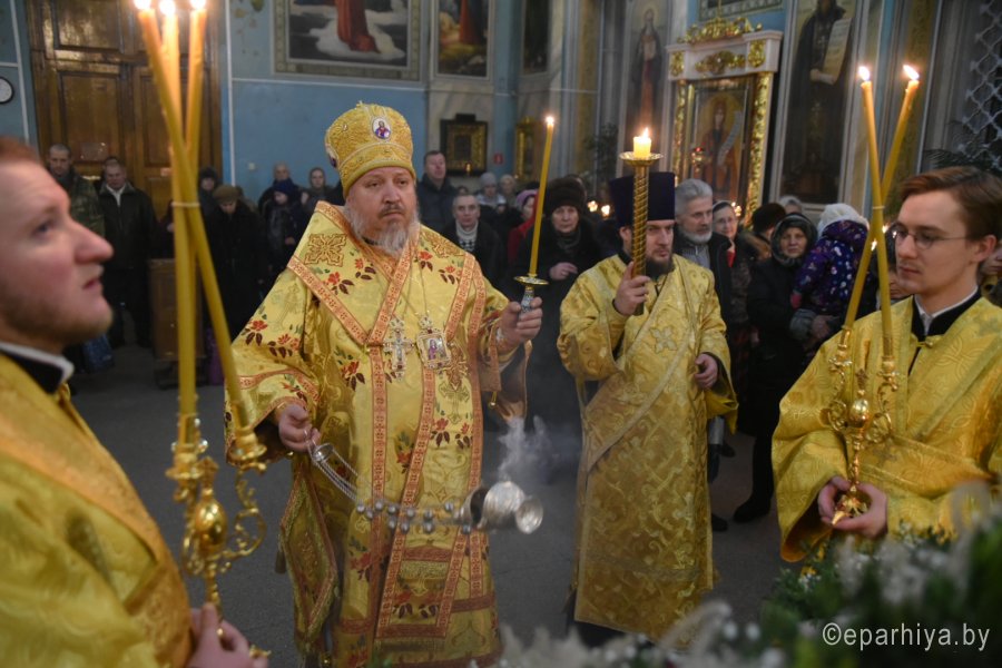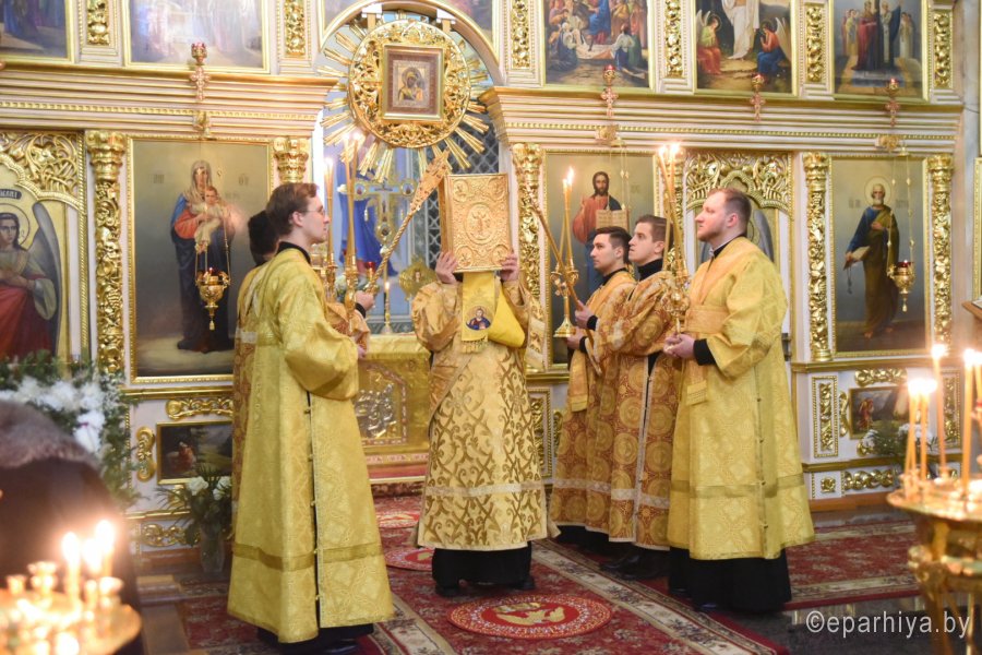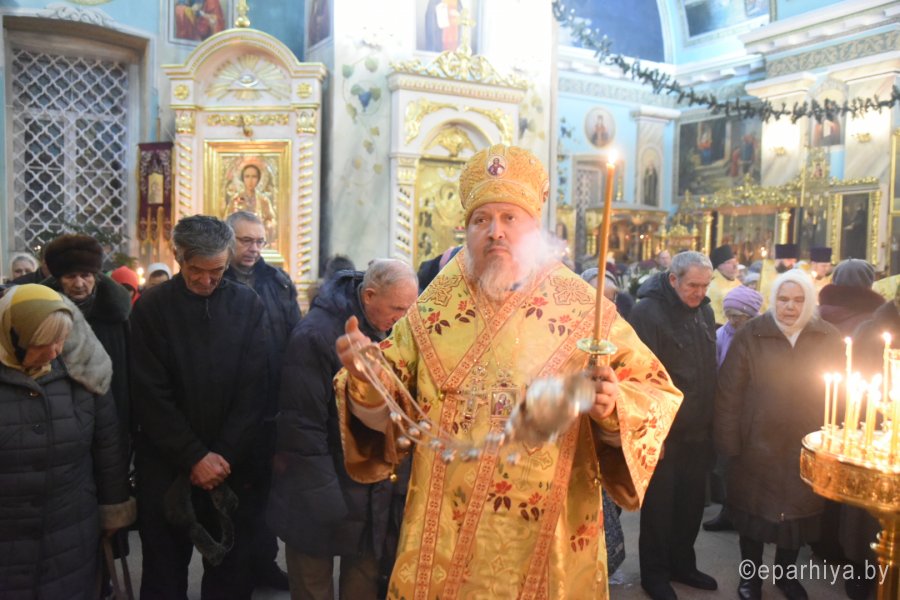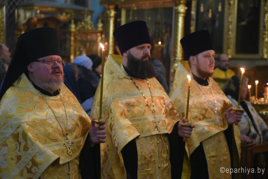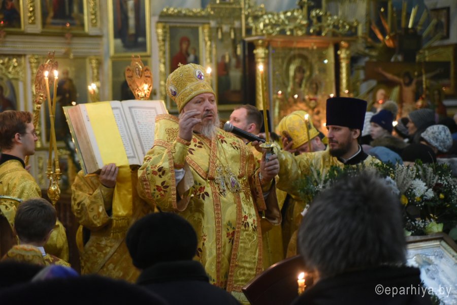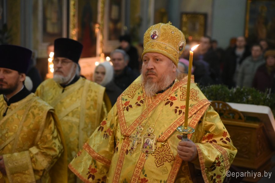 Всенощное бдение в канун Недели 30-й по Пятидесятнице Высокопреосвященный Стефан совершил в Петро-Павловском кафедральном соборе г.Гомеля в сослужении духовенства собора. По окончании богослужения Владыка обратился к молящимся со словами Архипастырского назидания. |