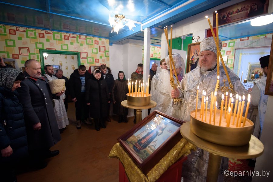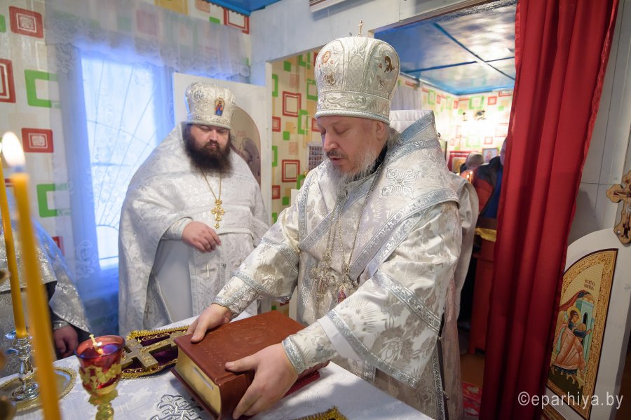 23 декабря 2018г. Высокопреосвященный Стефан совершил совершил чин освещения престола и храма в честь святителя Иоасафа Белгородского в д.Казацкие Болсуны, а после совершил Божественную Литургию. Высокопреосвященному сослужили: секретарь Гомельской епархии протоиерей Георгий Алампиев, благочинный монастырей Гомельской епархии архимандрит Амвросий (Шевцов), благочинный Чечерского округа протоиерей Георгий Шмидов и настоятель прихода. По окончании богослужения Владыка поздравил причастников с принятием Святых Христовых Таин и обратился к молящимся со словами Архипастырского назидания. |