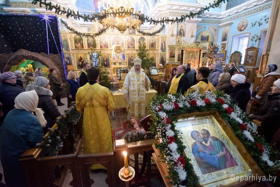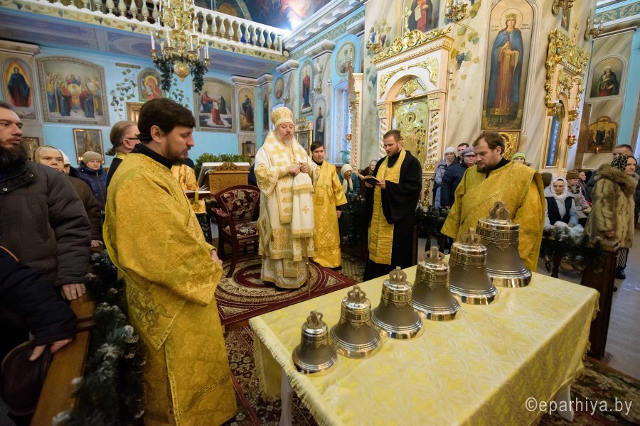 Божественную литургию в субботу седмицы 31-й по Пятидесятнице 29 декабря 2018г. Высокопреосвященный Стефан совершил в Петро-Павловском кафедральном соборе г.Гомеля в сослужении духовенства собора. По окончании богослужения Владыка освятил колокола, поздравил причастников с принятием Святых Христовых Таин и обратился к молящимся со словами Архипастырского назидания. |
