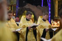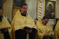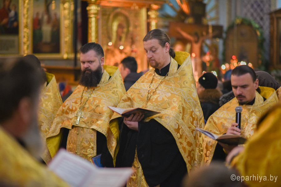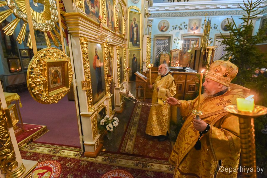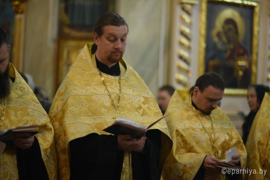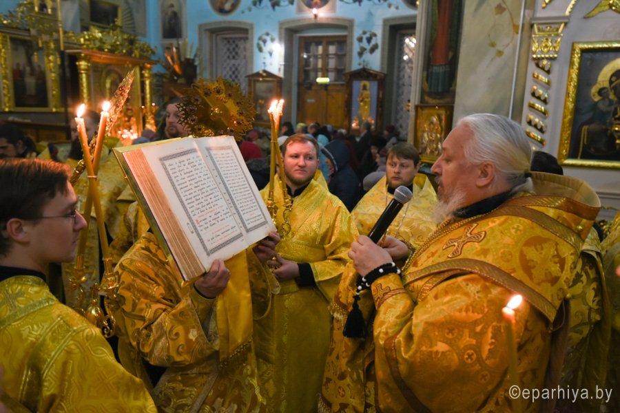 Вечернее богослужение с чтением акафиста нараспев Высокопреосвященнейший Стефан архиепископ Гомельский и Жлобинский совершил 30 декабря 2018г. в соборе святых апостолов Петра и Павла г. Гомеля в сослужении духовенства собора. Со словами проповеди к молящимся обратился клирик храма святого праведного Иоанна Кормянского в г.Гомеле иерей Владимир Дробышевский. По окончании богослужения Владыка обратился к присутствующим со словами Архипастырского назидания. |