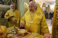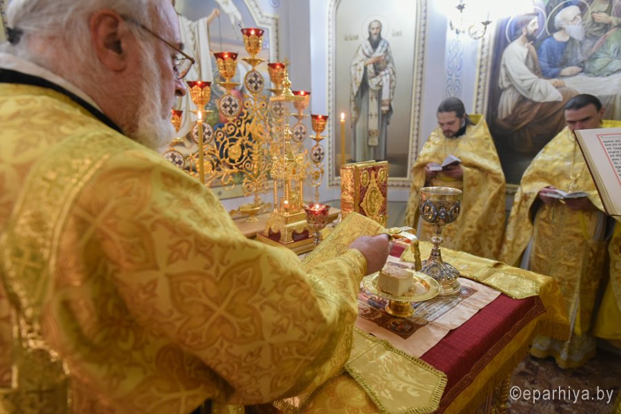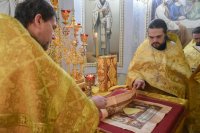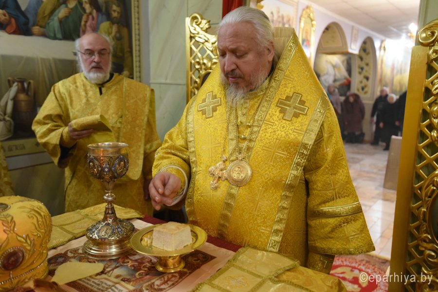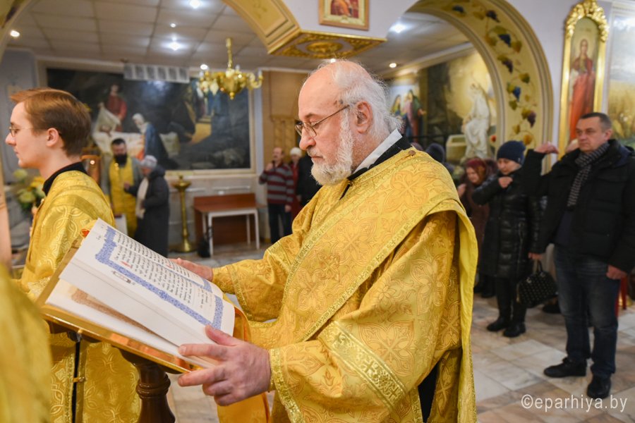 Божественную литургию в понедельник 32-й седмицы по Пятидесятнице 31 декабря 2018г. Высокопреосвященный Стефан в сослужении духовенства собора совершил в криптовом храме Петро-Павловского кафедрального собора г.Гомеля. По окончании богослужения Владыка поздравил причастников с принятием Святых Христовых Таин и обратился к молящимся со словами Архипастырского назидания. |