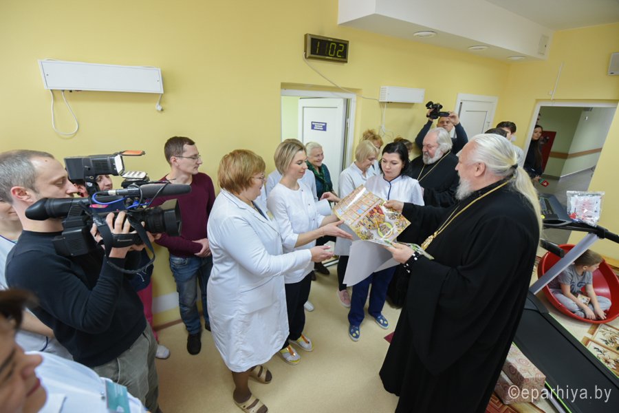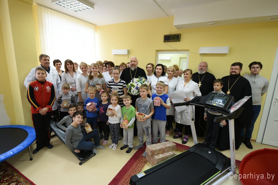 В Гомельской епархии не забывают о самых маленьких, именно тех, кому особенно необходима помощь и забота. В череде Рождественских мероприятий стало доброй традицией посещение Гомельской центральной городской детской клинической поликлиники. 5 января 2019г. Высокопреосвященный Стефан, совместно с настоятелями Гомельских храмов Иверской иконы Божией Матери и Преображения Господня протоиереем Георгием Туром и протоиереем Олегом Костромой преподнес к празднику Рождества Христова оборудование для кабинета реабилитации и физиотерапии, благодаря чему маленькие гомельчане смогут заниматься восстановлением своего здоровья. |