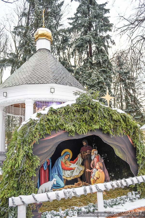 Пещера из веток с находящимися внутри фигурками Младенца Христа и Богородицы, Иосифа, ангелов, пастухов разместилась прямо на территории Свято-Петро-Павловского кафедрального собора. Эта маленькая панорама здесь появилась впервые. Накануне Рождества Христова можно полюбоваться вертепом и перенестись умом и сердцем в Вифлеем, к яслям Младенца Христа. Ежедневно по вечерам здесь включают иллюминацию. Взрослые и дети с любопытством подходят. Рассматривают фигурки. Ребята спрашивают мам и пап: «А это кто? А это?..» За этим скромным и непритязательным действием разворачивается история Рождества Христова. Наверное, ребёнку интересно прочесть дома евангельские рассказы о Рождестве, но вместе с родными встретиться с историей светлого праздника в храме, возле вертепа – другое дело. Священник советует прийти в храм не к самой торжественной литургии, которая начнётся ровно в полночь на Рождество, а накануне. – С самого утра завтра, 6 января, посреди храма уже поставят Вифлеемскую свечку, она свидетельствует о том, что Иисус Христос родился, – говорит клирик Петро-Павловского кафедрального собора г.Гомеля иерей Иоанн Заяц. – Особые торжества начнутся с 8 утра и продолжатся весь день. Всенощное праздничное бдение будет длиться с 17.00 до 20.00. Потом небольшой перерыв. И в полночь начнётся торжественная литургия. Обычно в полтретьего ночи празднество заканчивается. Исповедоваться священнослужитель советует заранее, но тем, кто не смог или не успел, можно и в праздничный день. Так как Рождество – семейный праздник, лучше всего навестить своих родственников, оставить дела, заботы и побыть в семейном кругу. Что касается детей, то священник советует подарочки под ёлку оставлять не только под Новый год, но и под Рождество. И просто подарить ребятам радость и хорошее настроение. До первой звезды пищу принято не вкушать. Потом совершается трапеза, она должна быть постной и скромной, ведь за сорок дней до Рождества Христова принято соблюдать пост. Обязательное блюдо – сочиво. Это простое блюдо, которое готовится из злаков – ячменя, риса, пшеницы. Злаки отваривают и смешивают с маком, орехами, фруктами. По древней традиции на стол кладут солому – это образ тех яслей, в которых родился Христос. В сам рождественский день, 7 января, начиная с 10–11 часов на территории главного храма города разместится блинная. Священники будут готовить блины и раздавать всем желающим горячее лакомство. По материалам: Гомельские ведомости Автор фото: Анна Пащенко |
