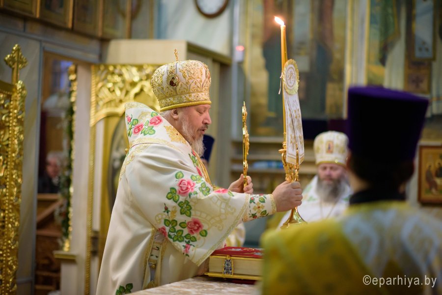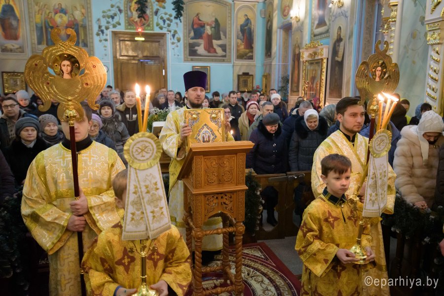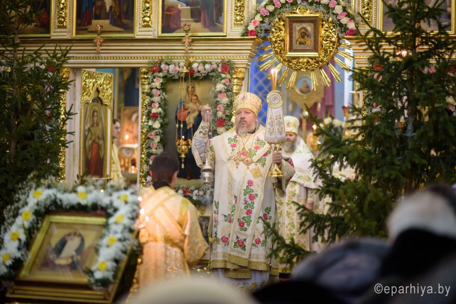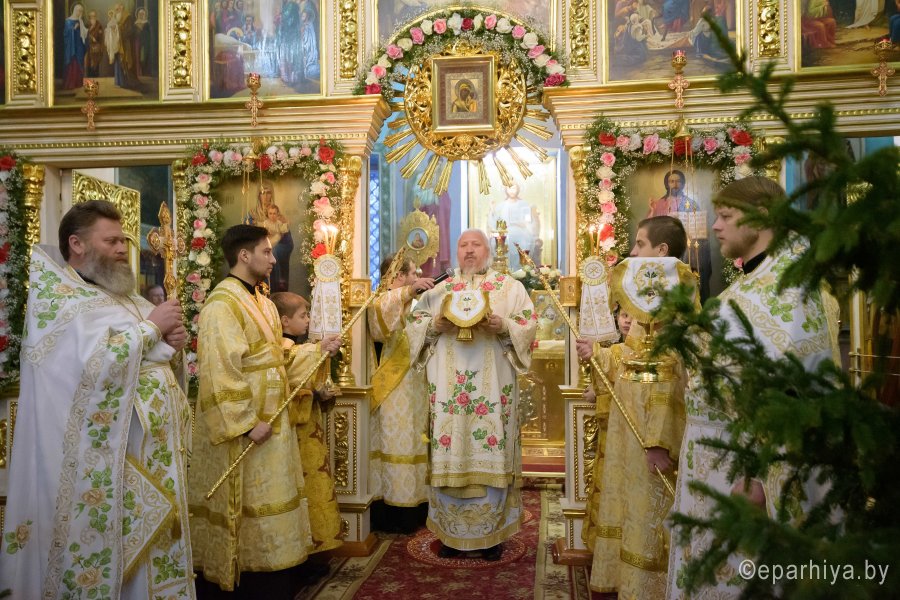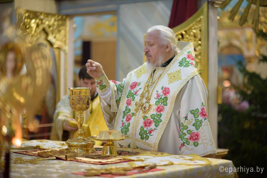 Божественную литургию в Рождественский сочельник 6 января 2019г. Высокопреосвященный Стефан совершил в Петро-Павловском кафедральном соборе г.Гомеля. Высокопреосвященному сослужили: секретарь Гомельской епархии протоиерей Георгий Алампиев и духовенство собора. По окончании богослужения Владыка поздравил причастников с принятием Святых Христовых Таин и обратился к молящимся со словами Архипастырского назидания. |