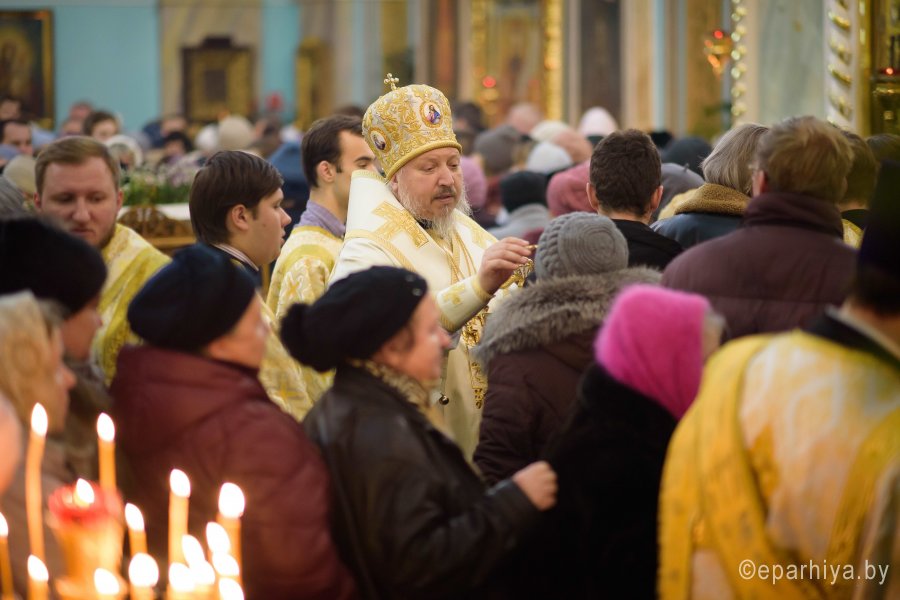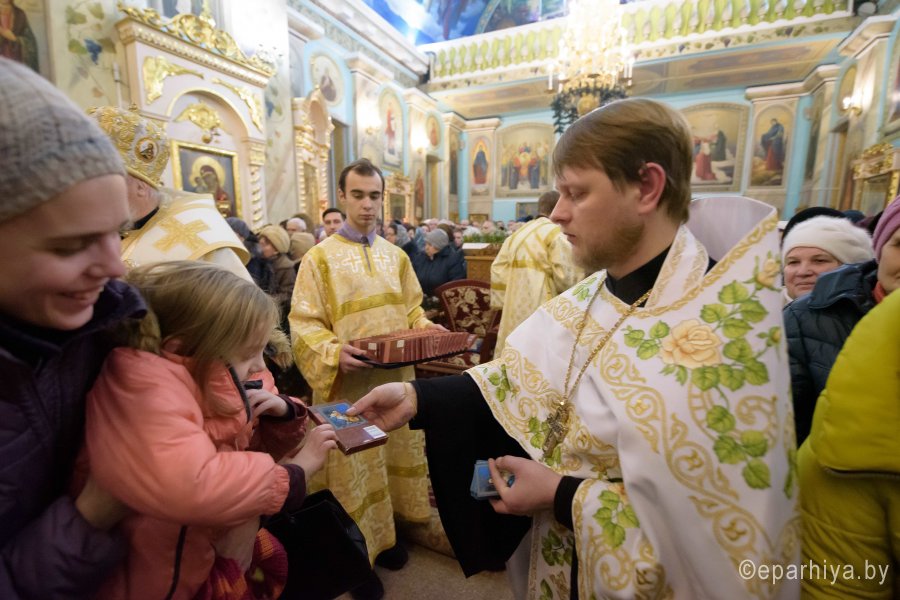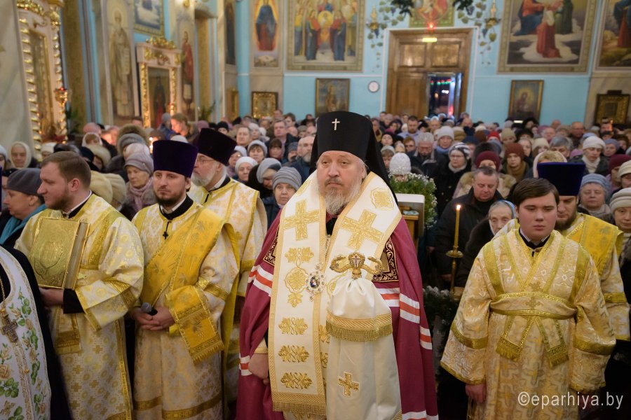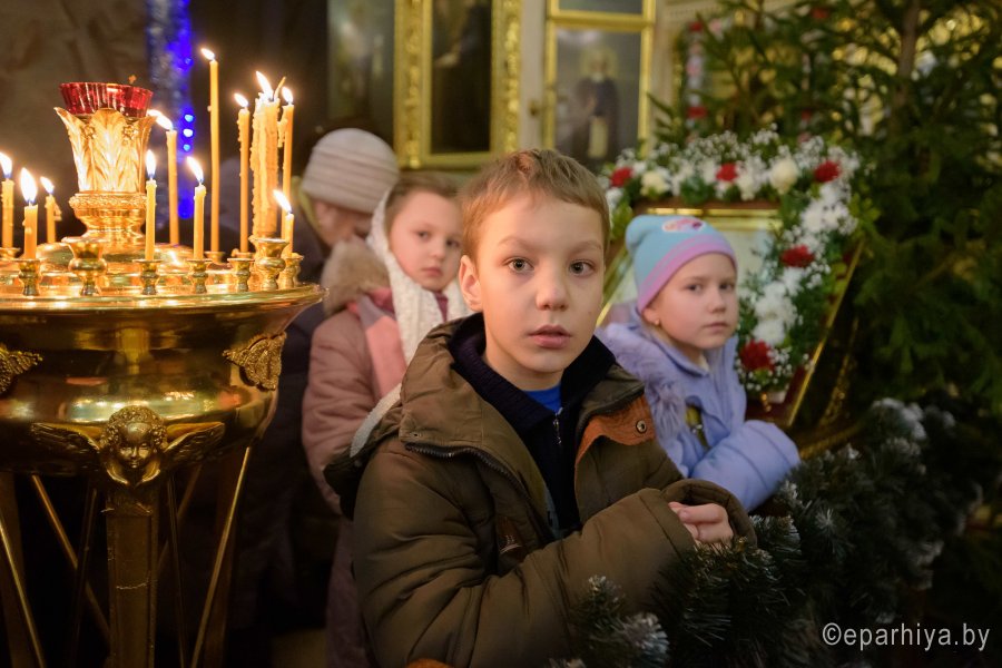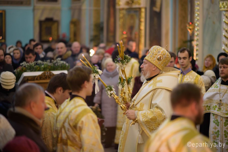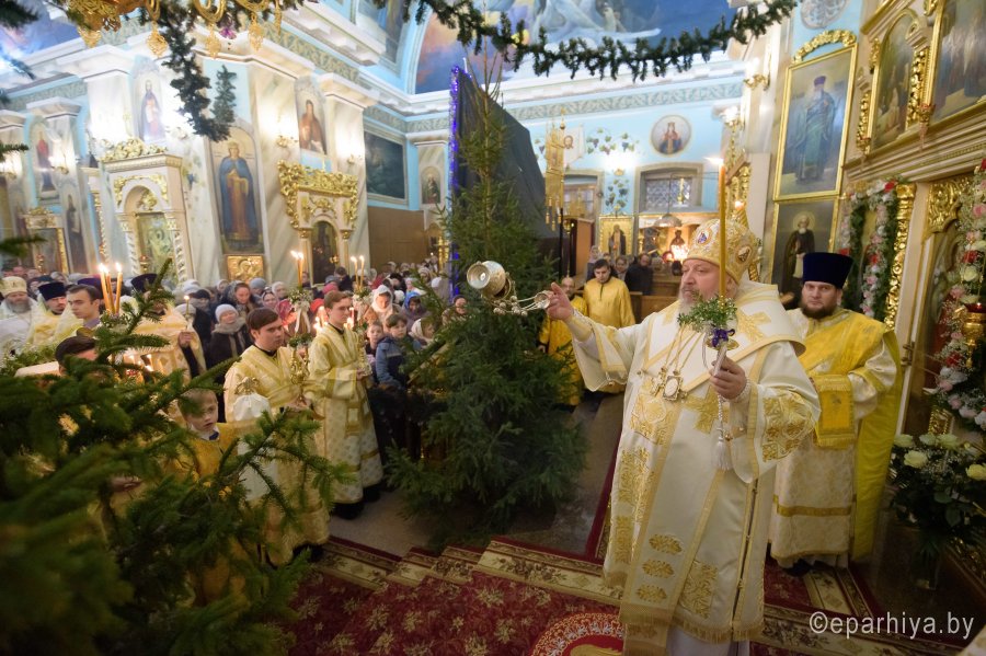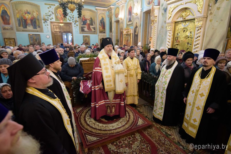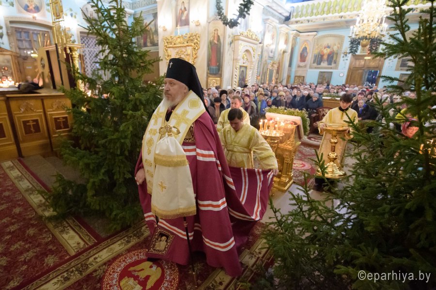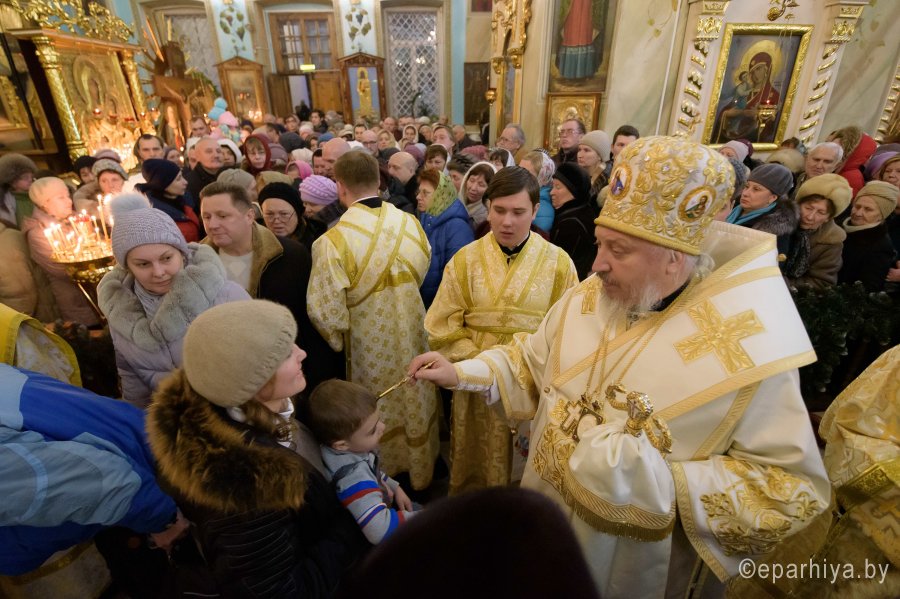 Вечером, 6 января 2019г., в канун Рождества Христова, Высокопреосвященный Стефан совершил уставные богослужения в Петро-Павловском кафедральном соборе г.Гомеля. Высокопреосвященному сослужили: секретарь Гомельской епархии протоиерей Георгий Алампиев и духовенство собора. По окончании богослужения Владыка поздравил молящихся с наступающим праздником и обратился со словами Архипастырского назидания, а маленькие прихожане получили из рук Высокопреосвященного сладкие подарки. |