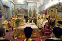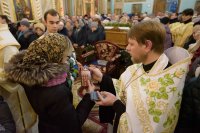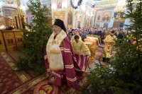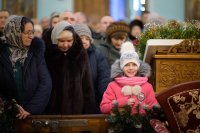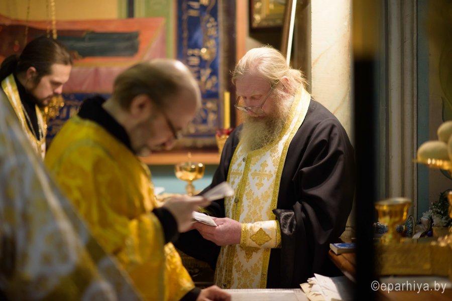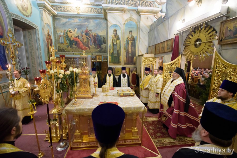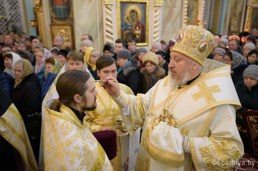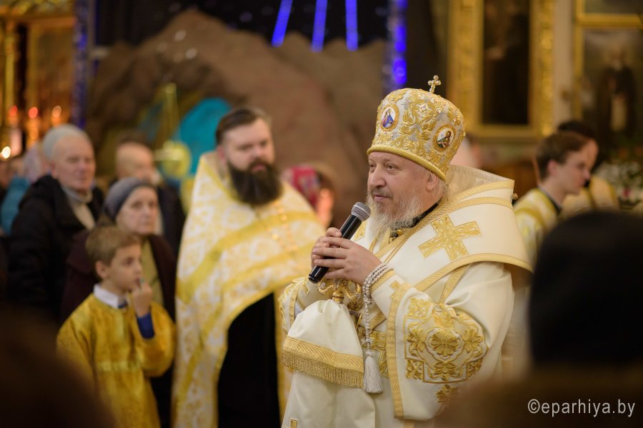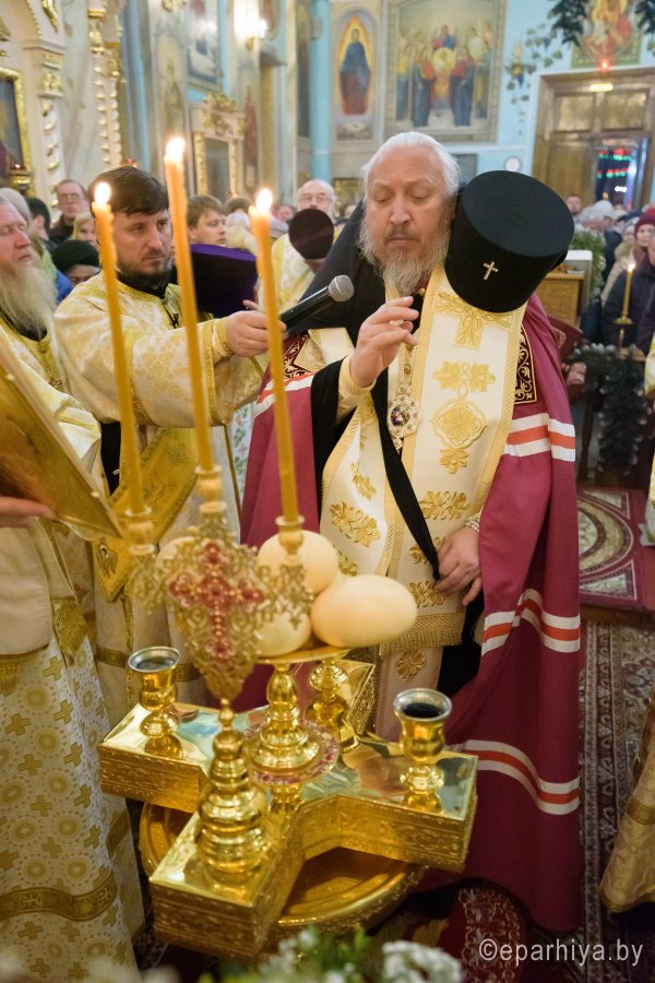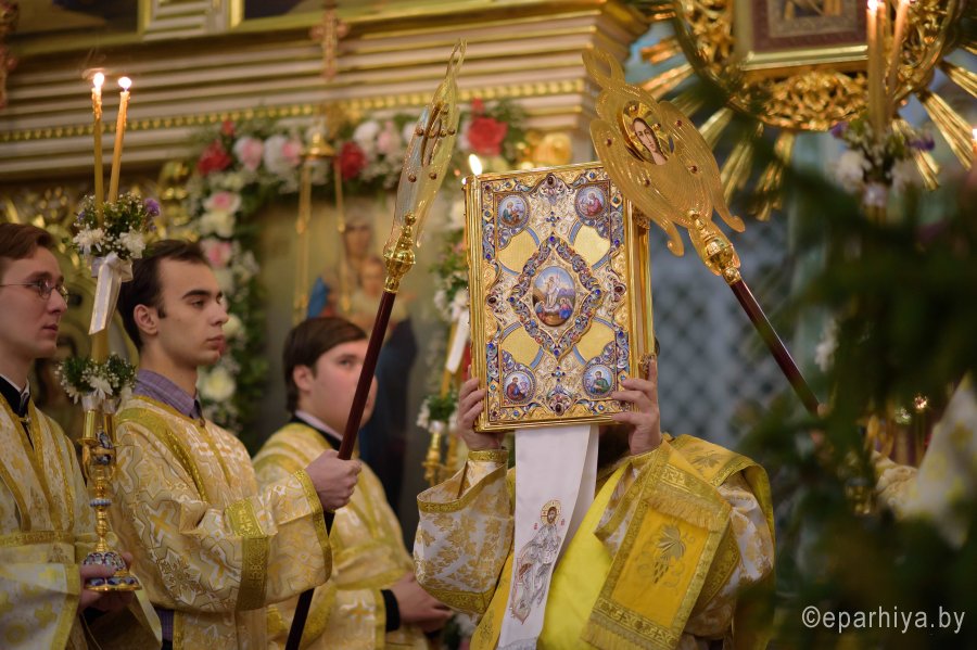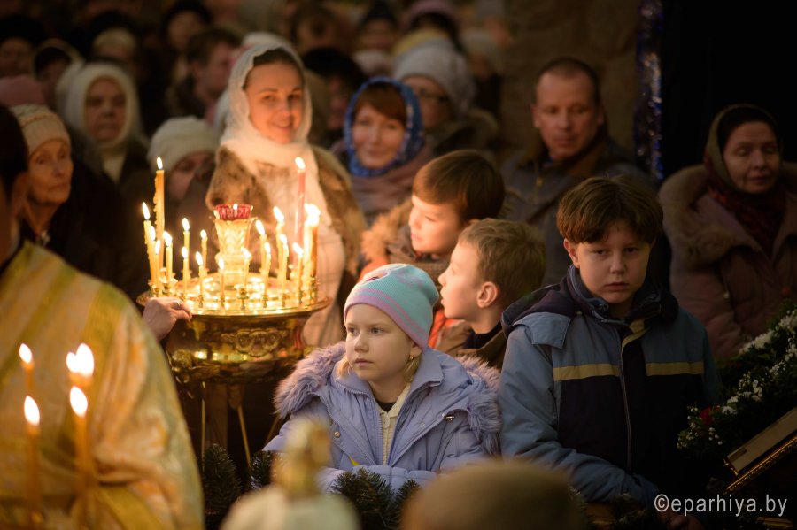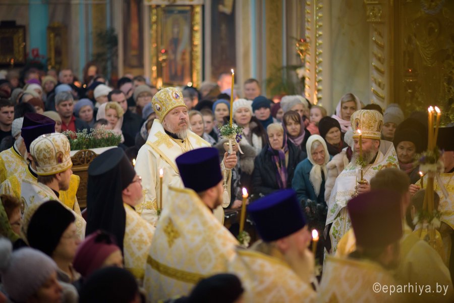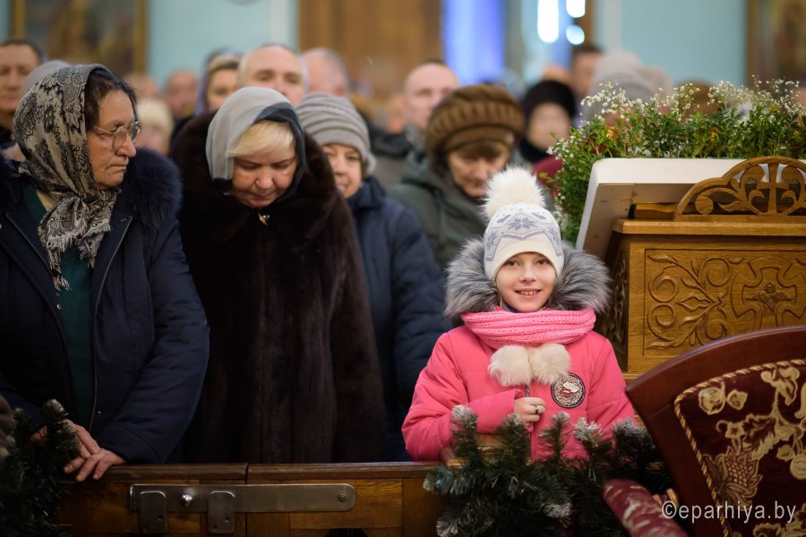 Вечером, 6 января 2019г., в канун Рождества Христова, Высокопреосвященный Стефан совершил уставные богослужения в Петро-Павловском кафедральном соборе г.Гомеля. Высокопреосвященному сослужили: секретарь Гомельской епархии протоиерей Георгий Алампиев и духовенство собора. По окончании богослужения Владыка поздравил молящихся с наступающим праздником и обратился со словами Архипастырского назидания, а маленькие прихожане получили из рук Высокопреосвященного сладкие подарки. |