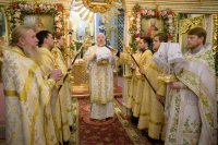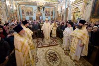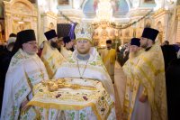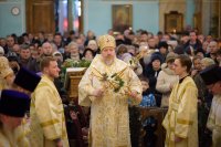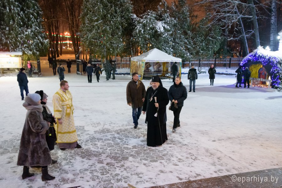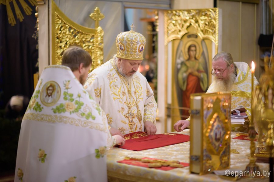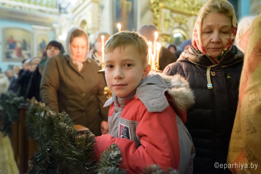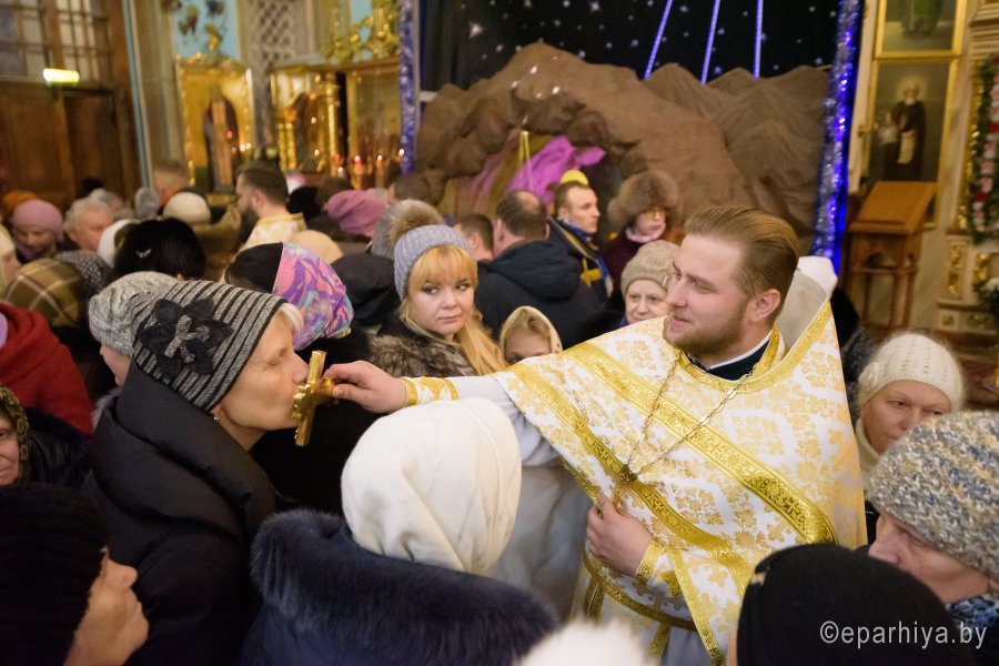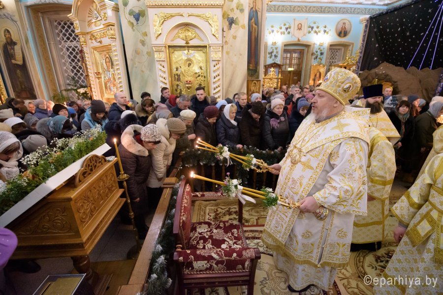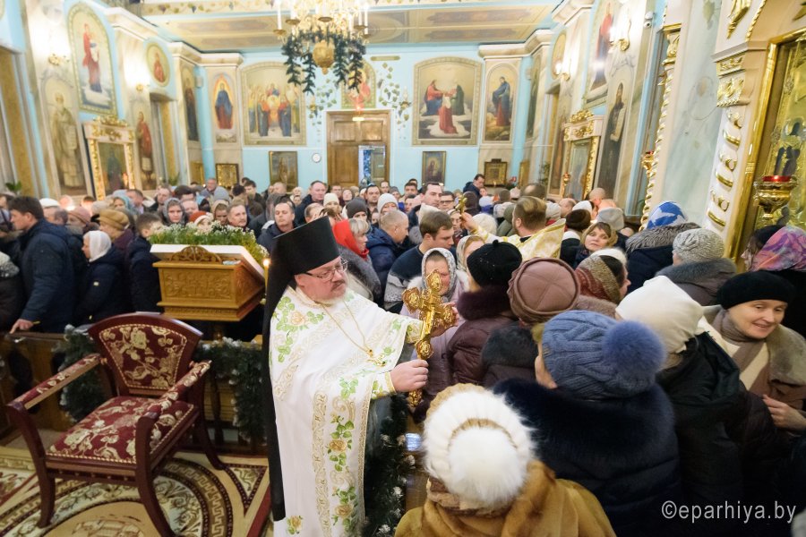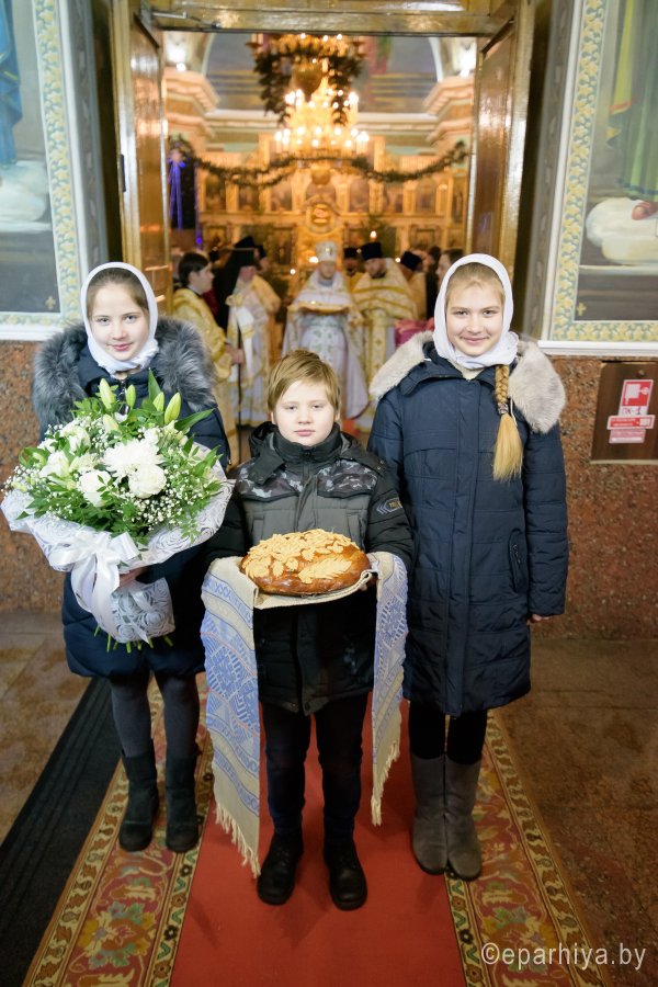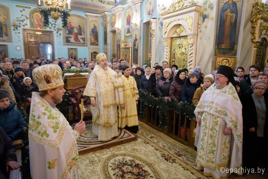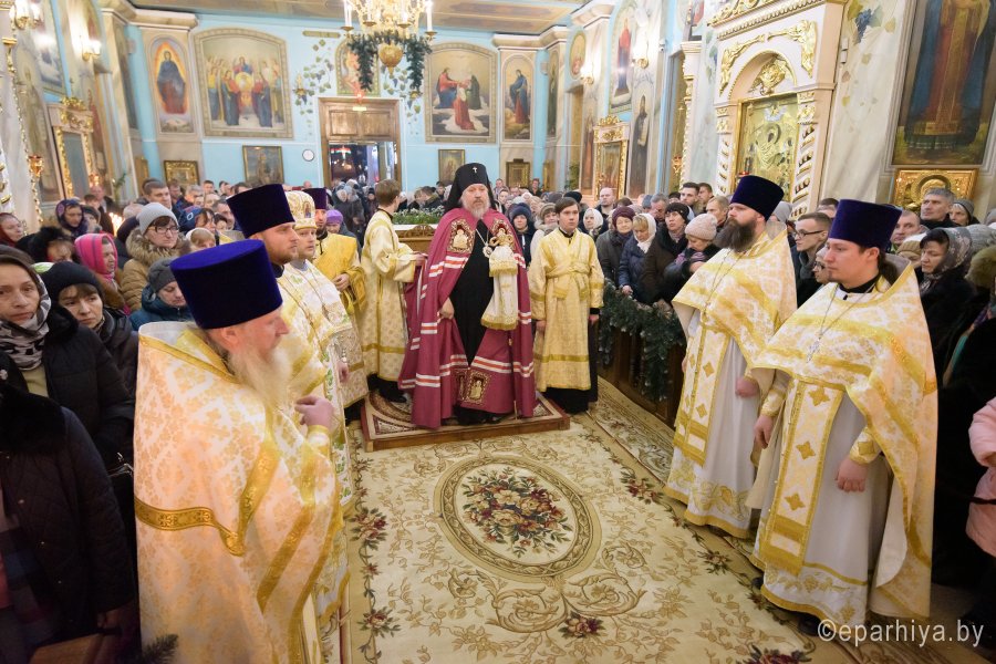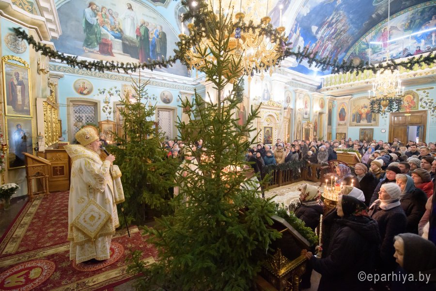 Праздничную Божественную литургию в Светлый праздник Рождества Господа и Спаса нашего Иисуса Христа, 7 января 2018г., Высокопреосвященнейший Стефан совершил в Петро-Павловском кафедральном соборе г.Гомеля. Высокопреосвященному сослужили: секретарь Гомельской епархии протоиерей Георгий Алампиев и духовенство собора. В Гомельской епархии активно ведется церковная помощь людям с ограниченными возможностями. Не остался без внимания и такой Великий праздник, как Рождество Христово. На язык жестов для слабослышащих богослужение переводил клирик храма иконы Божией Матери "Скоропослушница" г. Гомеля иерей Александр Пранкевич. По запричастном стихе ключарь Свято-Петро-Павловского кафедрального собора г. Гомеля иерей Алексей Сергеев огласил Рождественское послание Святейшего Патриарха Московского и всея Руси Кирилла. По окончании богослужения Владыка поздравил всех молящихся со Светлым праздником Рождества Христова, и обратился со словами Архипастырского назидания. |