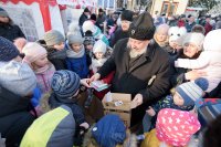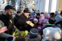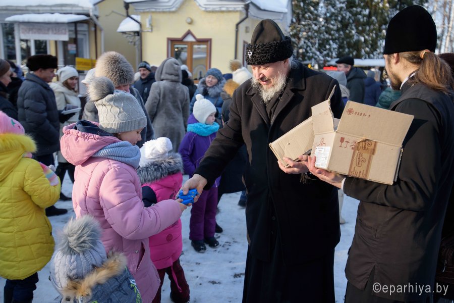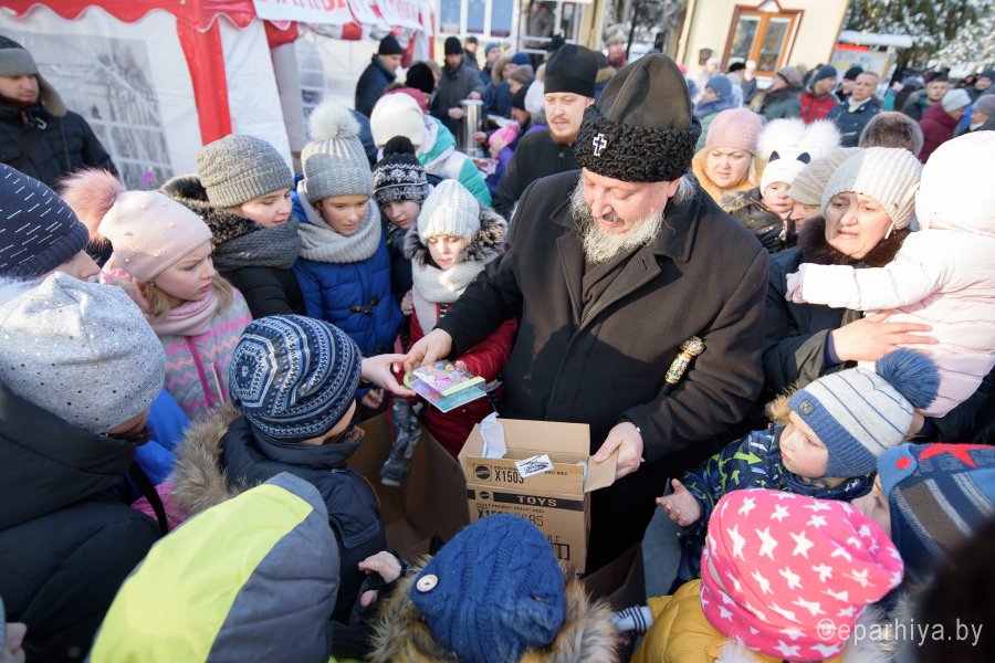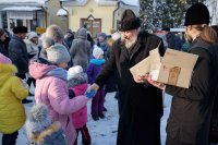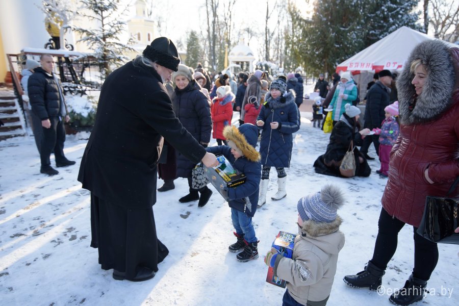 В великий праздник Рождества Христова, по окончании поздней Божественной литургии, во дворе Петро-Павловского кафедрального собора прошел праздничный концерт, в котором приняли участие дети из Воскресной школы «ЧАДУШКИ», а также Рождественская выставка-ярмарка, от молодежной группы собора «ИХФИС". Для маленьких прихожан было организованы игры и эстафеты, катание на пони. Прекрасным дополнением праздника стали горячий чай, печенье и пироги. Запомнился праздник «блинами от батюшки». Посещая Рождественское мероприятие Высокопреосвященный Стефан поздравил с Рождеством Христовым всех присутствующих. Маленькие гости получили от Владыки сладкие подарки и игрушки. |