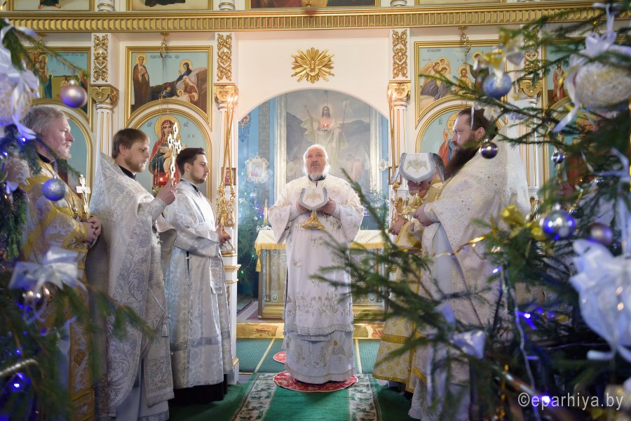 Божественную литургию в попразднство Рождества Христова 8 января 2019г. Высокопреосвященный Стефан совершил в храме Святой Живоначальной Троицы г.Жлобина. Высокопреосвященному сослужили: секретарь Гомельской епархии протоиерей Георгий Алампиев, благочинный монастырей Гомельской епархии архимандрит Амвросий (Шевцов), благочинный Жлобинского округа протоиерей Василий Пилипенко и духовенство благочиния. По окончании богослужения Владыка поздравил причастников с принятием Святых Христовых Таин и обратился к молящимся со словами Архипастырского назидания. |