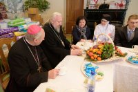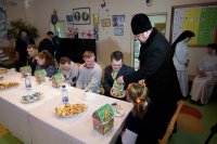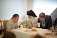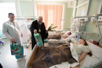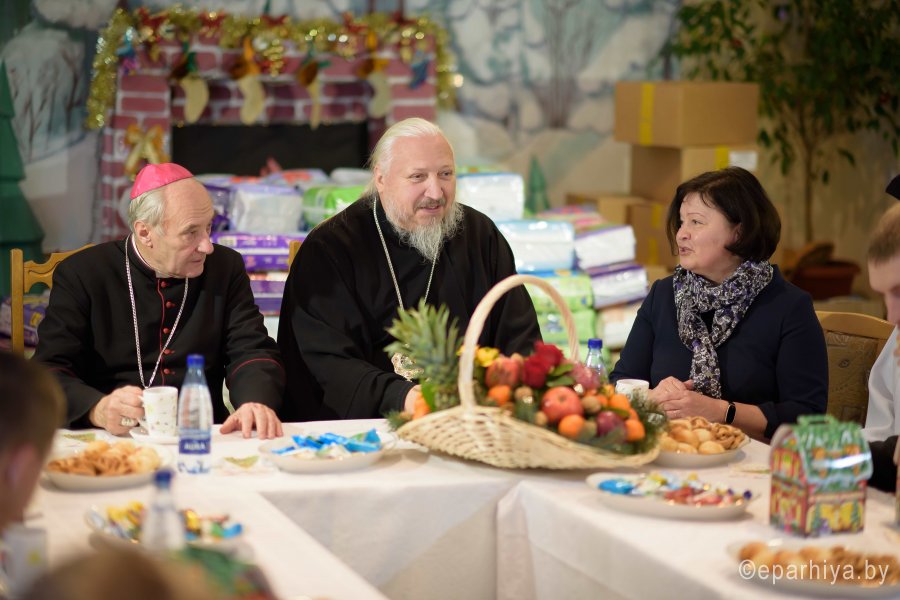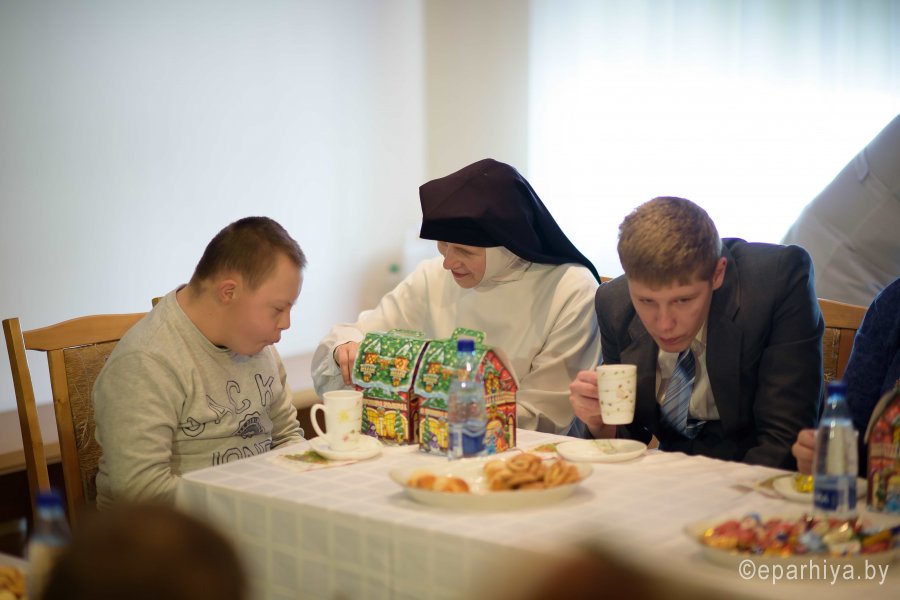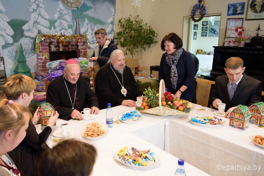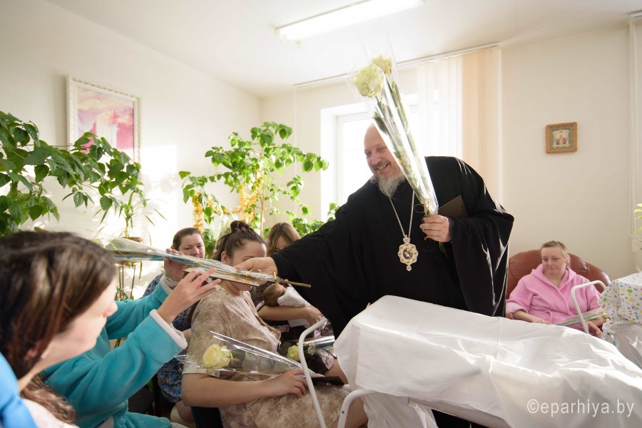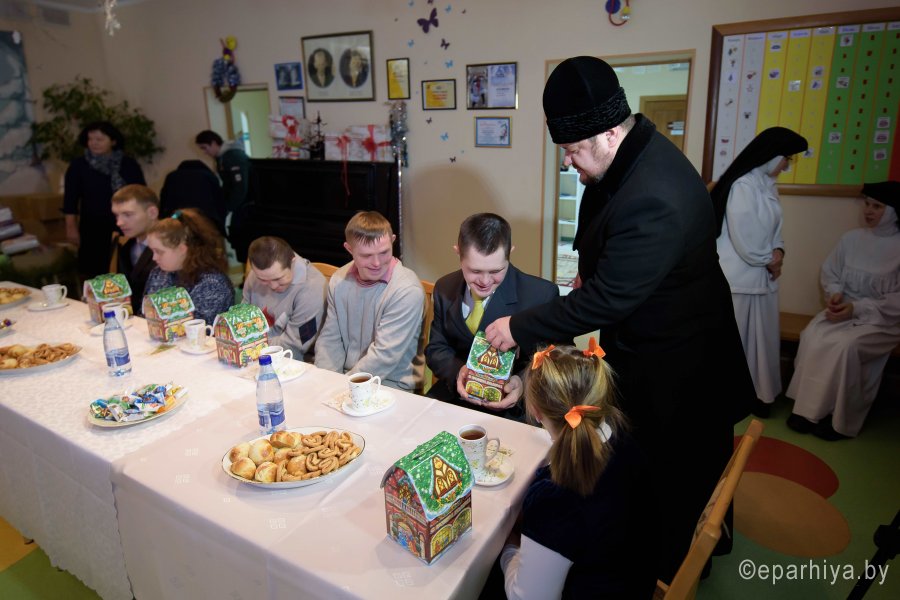 8 января 2019г., в дни праздника Рождества Христова, Высокопреосвященнейший Стефан, архиепископ Гомельский и Жлобинский с благотворительным визитом посетил гомельскую «Детскую деревню» (Учреждение «Дом-интернат для детей-инвалидов с особенностями психофизического развития»), где преподнёс подарки детям, находящимся в ней на попечении, и состоялось чаепитие с ребятами. Монахини ордена Бенедиктинок Самаритянок Креста Христова благотворительного центра "Каритас-Милосердие", во главе с католическим епископом Казимиром, опекающие это учреждение, где священнослужитель Троицкого храма, который также регулярно посещает Детскую деревню, с проповедью и совершает там священные Таинства, встретили Владыку Стефана и сердечно поблагодарили за оказанную поддержку и подаренный детям праздник. В Детской деревне на данный момент находиться 64 человека, из которых 38 несовершеннолетних, половина которых не имеет законных представителей. Самому старшему воспитаннику 32 года. Ежегодные Архипастырские визиты, проводимые Гомельской епархией свидетельствуют о Вере, которая по словам апостола Иакова: "… без дел мертва" (Иак 2:26). В этом году визит Высокопреосвященного Стефана, организованный совместно с храмами Иверской Божией Матери и Преображения Господня г.Гомеля, произвела на воспитанников большое впечатление. Дети были очень рады гостям и с большим удовольствием приняли подарки от Владыки. В завершение визита епископ Казимир выразил благодарность архиепископу Стефану за организованное мероприятие в дни Светлого праздника Рождества Христова. Без внимания в эти дни не остались и матери с новорождёнными детьми в УЗ «Гомельский областной родильный дом», который Высокопреосвященный Стефан посетил после визита в дом-интернат. Всем мамам, родившим детей в эти светлые дни, Владыка преподал свое Архипастырское благословение и преподнес Рождественские сладкие подарки и предметы гигиены для детей, цветы и иконы Ангела Хранителя для новорожденных. Обращаясь к присутствующим, Высокопреосвященный выразил надежду, что данная акция станет ежегодной. В этот день тут родилось 15 детей, 6 мальчиков и 9 девочек, которые и станут будущим поколением нашей страны. Медсёстры также получили сладкие подарки и поздравления от Владыки. Теплые слова благодарности в адрес Высокопреосвященного высказал заместитель главного врача по детству и родовспоможению Воронович Геннадий Вячеславович, который и сопровождал Владыку во время его визита в УЗ «Гомельский областной родильный дом». Данную акцию организовала Гомельская епархия совместно с Иверским и Преображенским храмами г.Гомеля. |