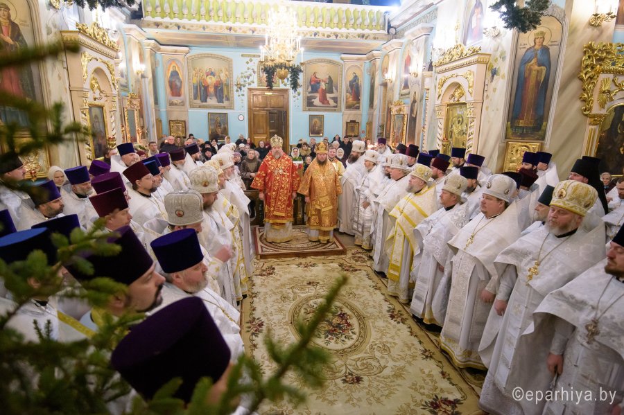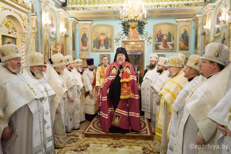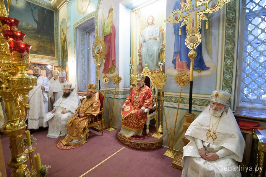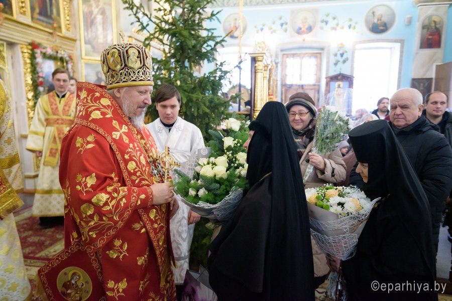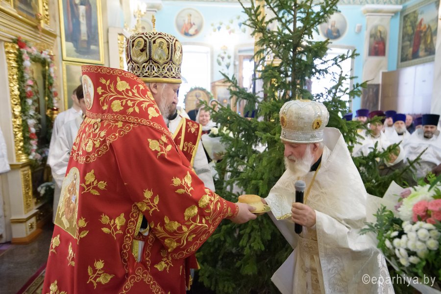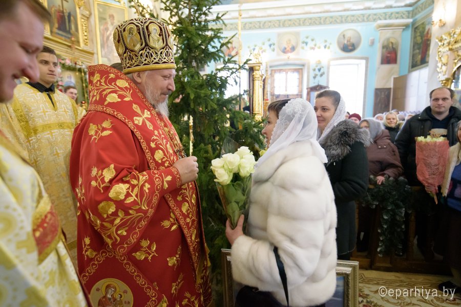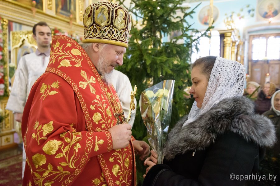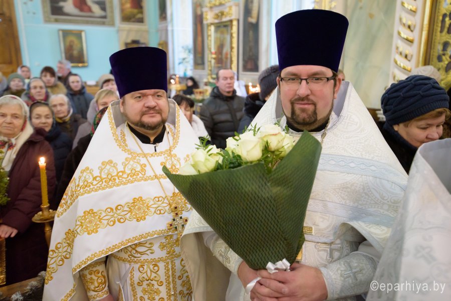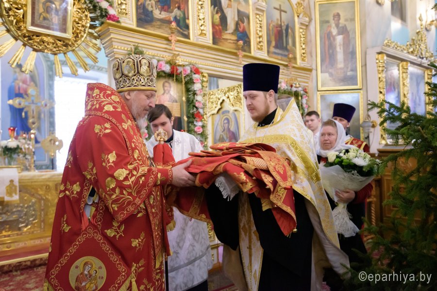 В Петро-Павловском кафедральном соборе г.Гомеля 9 января прошли торжества, посвященные дню памяти ап. первомч. и архидиакона Стефана. В день своего тезоименитства Высокопреосвященный Стефан возглавил Божественную литургию в сослужении секретаря Гомельской епархии протоиерея Георгия Алампиева, благочинных округов Гомельской епархии, Председателей епархиальных отделов, настоятелей храмов и духовенства епархии. За богослужением были вознесены молитвы о мире в Украине. Проповедь по запричастном стихе произнес клирик Свято-Петро-Павловского кафедрального собора г. Гомеля иерей Иоанн Заяц. Духовник Гомельской епархии протоиерей Стефан Гладыщук от лица духовенства поздравил Высокопреосвященного Стефана с Днем Ангела и преподнес в дар святую просфору и букет цветов. Ключарь Петро-Павловского кафедрального собора г.Гомеля иерей Сергей Алексеев поздравил Высокопреосвященного Владыку от лица духовенства собора и преподнес в дар Архиерейское облачение. По окончании богослужения Высокопреосвященный Стефан обратился со словами Архипастырского назидания и поздравил старейшего клирика протоиерея Стефана Гладыщука с днем Ангела и преподнес в дар митру. |