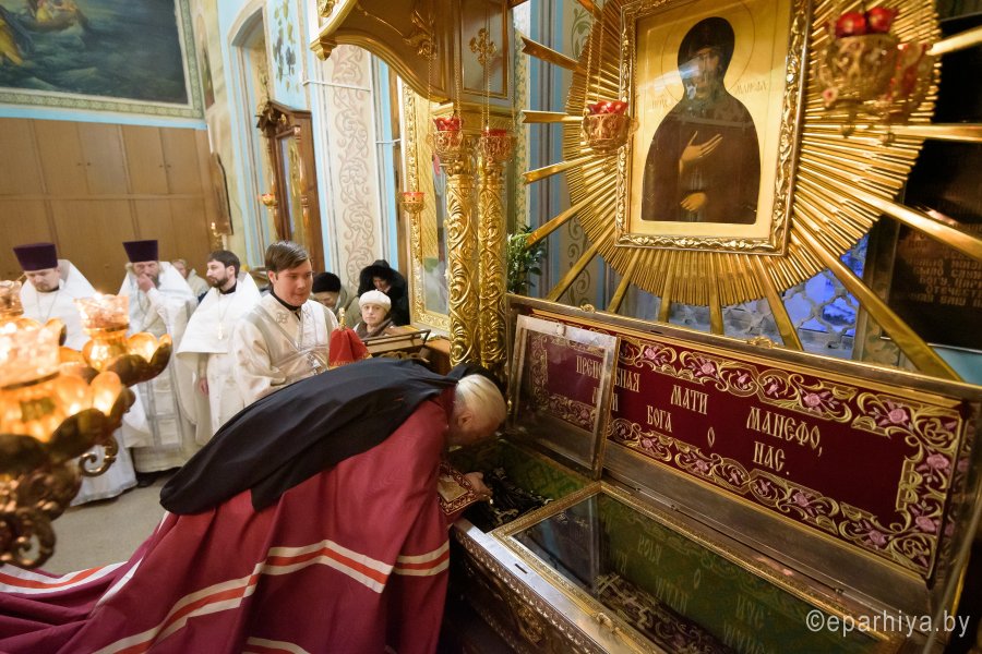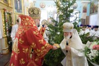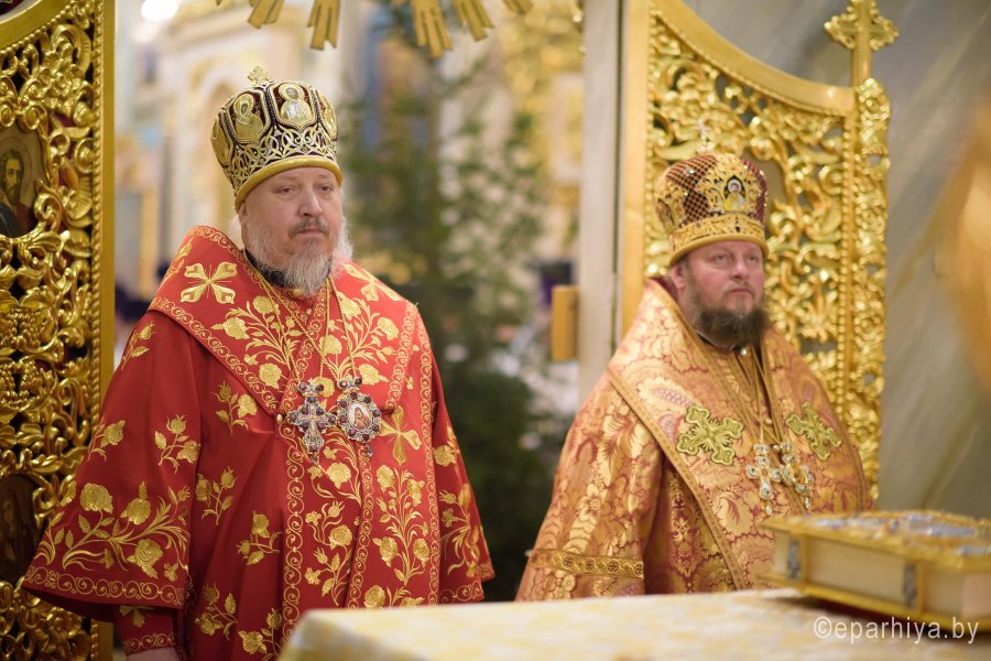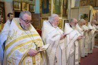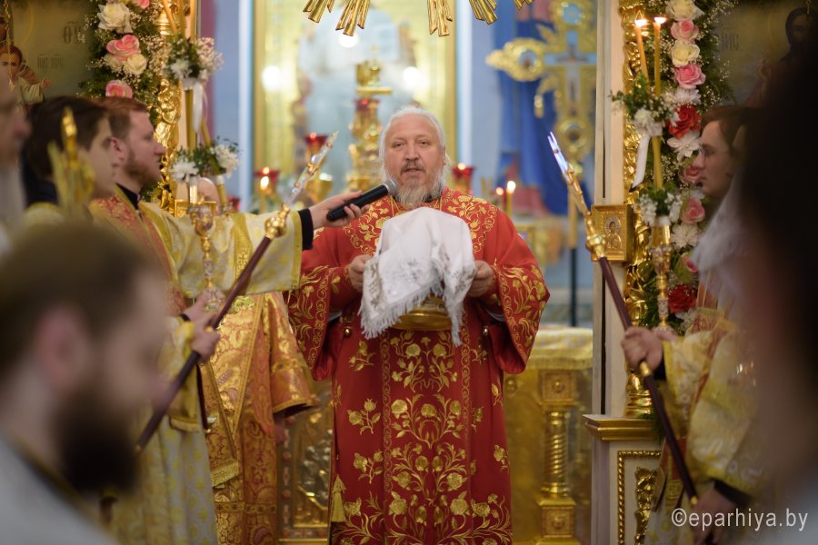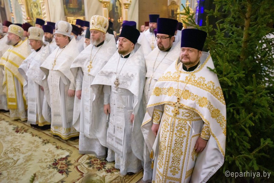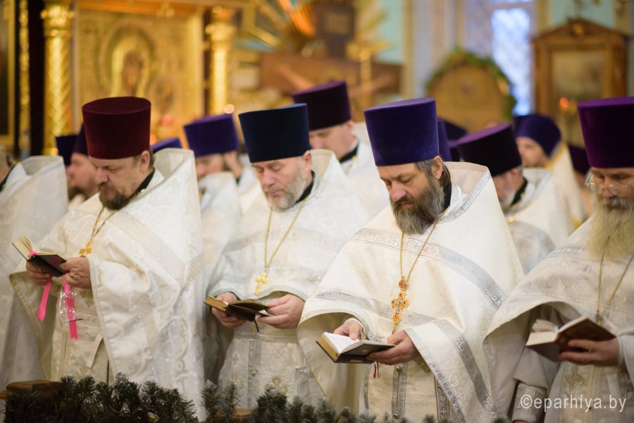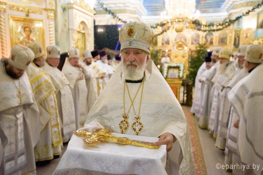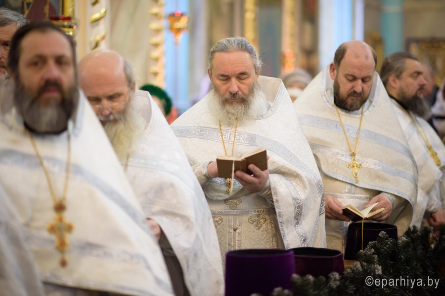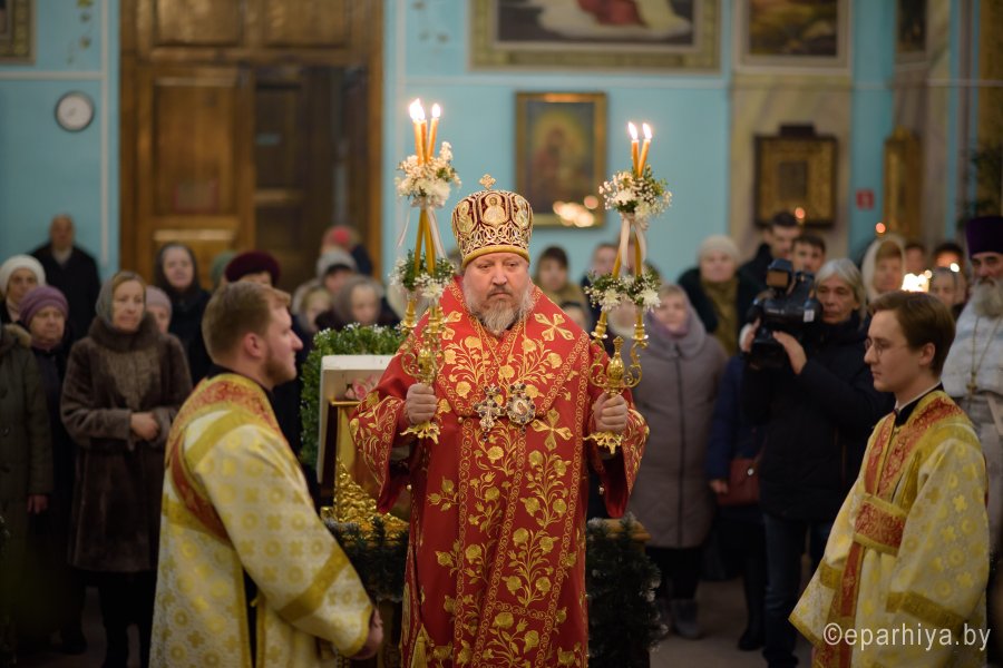 В Петро-Павловском кафедральном соборе г.Гомеля 9 января прошли торжества, посвященные дню памяти ап. первомч. и архидиакона Стефана. В день своего тезоименитства Высокопреосвященный Стефан возглавил Божественную литургию в сослужении секретаря Гомельской епархии протоиерея Георгия Алампиева, благочинных округов Гомельской епархии, Председателей епархиальных отделов, настоятелей храмов и духовенства епархии. За богослужением были вознесены молитвы о мире в Украине. Проповедь по запричастном стихе произнес клирик Свято-Петро-Павловского кафедрального собора г. Гомеля иерей Иоанн Заяц. Духовник Гомельской епархии протоиерей Стефан Гладыщук от лица духовенства поздравил Высокопреосвященного Стефана с Днем Ангела и преподнес в дар святую просфору и букет цветов. Ключарь Петро-Павловского кафедрального собора г.Гомеля иерей Сергей Алексеев поздравил Высокопреосвященного Владыку от лица духовенства собора и преподнес в дар Архиерейское облачение. По окончании богослужения Высокопреосвященный Стефан обратился со словами Архипастырского назидания и поздравил старейшего клирика протоиерея Стефана Гладыщука с днем Ангела и преподнес в дар митру. |