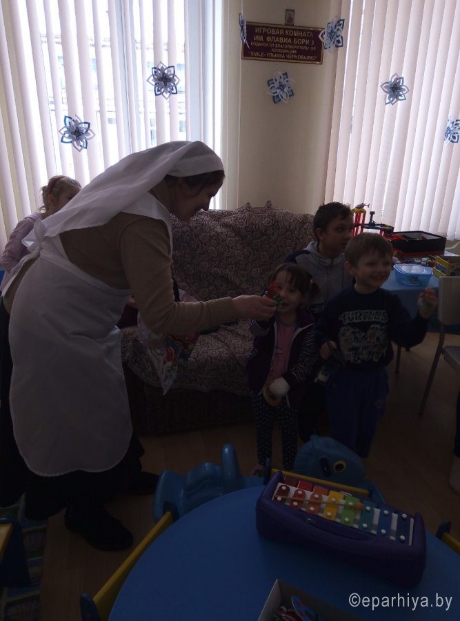 7 января, для всех кто присутствовал на Рождественском Богослужении, воспитанники воскресных школ Прихода храма Покрова Пресвятой Богородицы в г. Речице и Прихода Свято-Успенского собора в г. Речице представили праздничные Рождественские концерты. Святочными песнопениями они приветствовали всех собравшихся в храмах. В Покровском храме праздник продолжался в воскресной школе, где ребята разыграли мини спектакль по мотивам Рождества. А в Свято-Успенском соборе Рождественское гуляние перенеслось на храмовую территорию. Здесь предлагался горячий чай со сладостями. Каждый смог показать свои таланты в конкурсе христославов. А все желающие смогли поучаствовать в благотворительной ярмарке, на которую были выставлены поделки кружка художественного рукоделия воскресной школы. Праздник удался на славу. В этот же день, настоятель прихода храма Богоявления в аг. Короватичи Речицкого района, священник Алексей Лысиков , посетил больницу сестринского ухода в аг. Короватичи и поздравил персонал больницы и насельников больницы с праздником Рождества Христова. 8 января, клирик Свято-Успенского собора в г. Речице, иерей Николай Савостьянов совместно с сестрами милосердия, поздравили с праздником Рождества Христова ребят из детского отделения Речицкой районной больницы с пожеланием скорейшего выздоровления и возвращению домой. 13 января, поздравить с Рождеством Христовым, детей с очень непростой судьбой, из Речицкого дома-интерната для детей–инвалидов, имеющих физические нарушения, поехали воспитанники воскресной школы Прихода храма Покрова Пресвятой Богородицы в г. Речице, вместе с церковным хором. В актовом зале интерната, который украсили сами воспитанники, было показано театролизованное представление по мотивам Рождества. Пока происходило выступление в зрительном зале стояла абсолютная тишина и лишь по окончанию действия зал разразился овациями. Тепло принимали слушатели и выступление церковного хора, который исполнил святочные песнопения. По окончанию выступления настоятель Прихода храма Покрова Пресвятой Богородицы , протоиерей Николай Ефименко, поздравил воспитанников и весь трудовой коллектив школы-интерната с праздником Рождества Христова и пожелал, чтобы свет Вифлеемской звезды озарил для каждого его путь к Богу. Ведь если мы обретём Бога в своей душе, то нам откроется путь в Вечную Жизнь. |