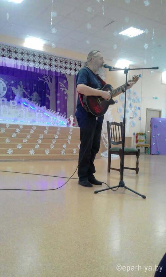 9–11 января 2019 г. состоялись творческие встречи с исполнителем авторской песни Алексеем Кирилловым (г. Саратов, Россия), приуроченные к Великому празднику Рождества Христова, организованные отделом по работе с молодежью. Всего за три дня были организованны и проведены творческие встречи более чем на десяти площадках Гомельской области. Алексей Кириллов в своих музыкальных композициях ярко раскрыл тему духовного возрождения человека. Каждый номер исполнителя проникал глубоко в душу и наполнял сердца слушателей любовью, заряжал энергией созидания. Творческие встречи с постояльцами и сотрудниками прошли в Учреждении «Территориальный центр социального обслуживания населения Советского района г. Гомеля», Учреждении «Уваровичский психоневрологический дом-интернат для престарелых и инвалидов», Учреждении «Речицкий дом-интернат для детей-инвалидов с особенностями психофизического развития», Учреждении «Дом-интернат для ветеранов войны, труда и инвалидов «Васильевка», Учреждении «Дом-интернат для престарелых и инвалидов «Шубино», ГУ «Городской центр культуры», Библиотеке им. Я. Коласа г. Гомеля, «Майский цветок» – отделении дневного и круглосуточного пребывания детей-инвалидов и молодых инвалидов учреждения «Территориальный центр социального обслуживания населения Железнодорожного района г. Гомеля», Детской деревни для детей и молодых людей с ограничениями города Гомеля, Учреждении «Гомельская областная клиническая больница». Также творческая встреча прошла с учащимися и преподавательским составом ГУО «Коммунаровская средняя школа Буда-Кошелевского района», и заключительная встреча с молодежью прошла в конференц-зале Свято-Петро-Павловского кафедрального собора. В конце каждого мероприятия зрители благодарили автора за прекрасную творческую встречу и в знак признательности вручали исполнителю сувениры ручной работы, рисунки и цветы. |