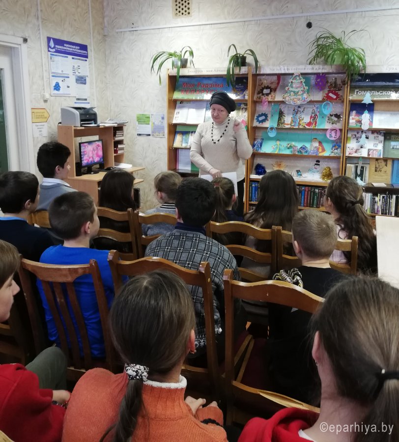 14 января 2019 года в библиотеке-филиале № 14 для учащихся младших классов СШ № 15 была организовано театрализованное представление «Пусть в Новый год случится чудо…». Новый год, Рождество, Святки – самые любимые праздники детей и взрослых. Ребят ждало путешествие в Северную страну. Школьники вместе со сказочными героями Снежной королевой, Атаманшей-Разбойницей, Вороной-Кларой искали осколки разбитого волшебного зеркала. Доброй традицией стала встреча ребята со священнослужителем. Клирик храма Грузинской иконы Божией Матери иерей Николай Барсуков рассказал ребятам об истории празднования Рождества, а также обратил внимание детей на то, что во время рождественских праздников люди проявляют милосердие и доброту к тем, кто болен, немощен, кто страдает, и стараются помочь страждущим. На встречу с детьми священнослужитель пришел с подарками. Каждый ребенок получил маленький сладкий сюрприз. Дети также порадовали священника подарком «Ангел», сделанным собственными руками. 15 января 2019 г. в библиотеке-филиале №14 прошел урок нравственности «Десять заповедей — основа жизни» с участием преподавателя воскресной школы Игнатович Ирины Валентиновны. Во время беседы ученики 7 класса ГУО «Средняя школа №15 г. Гомеля» попытались найти ответ на вопросы: что такое свобода, какие виды свободы существуют, нужны ли обществу нравственные законы? Преподаватель объяснила ребятам, чему учат 10 заповедей, что это основной моральный закон, который показывает, как жить и строить отношения с Богом и людьми. Ирина Валентиновна подробно остановилась на каждой из 10 заповедей и охарактеризовала их. Ребята узнали о том, почему заповеди были начертаны на двух скрижалях, что определяют первые четыре пункта правил, какие шесть правил содержат указания, формирующие гармоничные отношения между людьми. Ребята задавали вопросы и спорили, нужны ли современному обществу вековые нравственные законы, не являются ли заповеди устаревшими. Ученики пришли к выводу, что 10 заповедей даны для того, чтобы люди могли различать добро и зло в своих поступках. Мероприятие проводилось в рамках совместного проекта библиотеки, СШ №15, Новобелицкого храма святого Александра Невского по духовно-нравственному просвещению подростков «Через книгу — к духовности». |