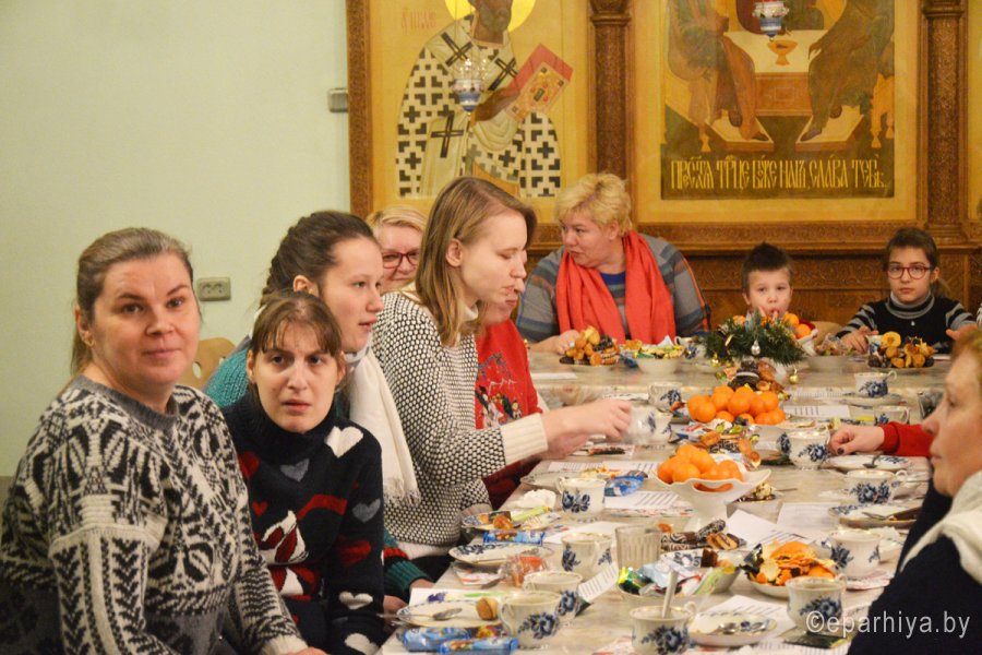 В дни Рождественских святок воспитанники приемных семей и молодые люди с ограниченными возможностями из отделения дневного и круглосуточного пребывания "Майский цветок" вместе с родителями и опекунами посетили Никольский монастырь. Встреча началась с посещения храма святителя Николая Чудотворца. Помолились за Божественной литургией, поставили свечи, посидели, помолчали, поклонились вертепу, и… перебрались в трапезную обители. Здесь участники Никольского братства накрыли для друзей и гостей сладкий стол, угостили чаем, подготовили конкурсную программу. Мероприятие возглавил архимандрит Савва (Мажуко). Священник произнес приветственное утешительное слово. Все вместе спели тропарь празднику Рождества. А потом ребята, их родители и опекуны с удовольствием играли: наряжали на бал принцессу, собирали надувные шары в мешки, отгадывали загадки, пели песни. Завершением праздника стали сладкие подарки. |
