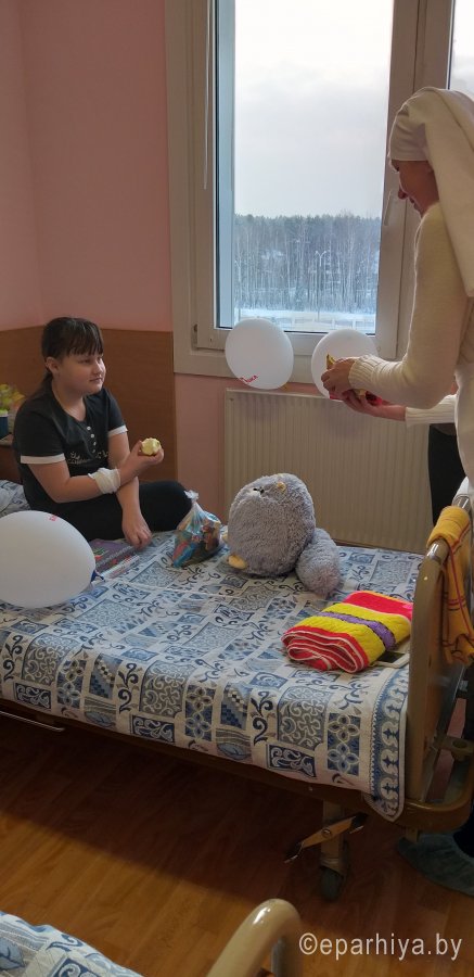 Благотворительная акция "Рождественский дар " по многолетней традиции, в эти рождественские дни прошла в Pеспубликанском научно-практическом центре радиационной медицины и экологии человека. Благодаря акции подготовленной сёстрами милосердия Сестричества во имя Святой великомученицы Варвары при участии и поддержке неравнодушных людей, более 100 пациентов находящихся на лечении в отделениях детской и взрослой гематологии, иммунопатологии, хирургии, ЧАЭС и гинекологии в этот день получили сладкие подарки и апельсины. |
