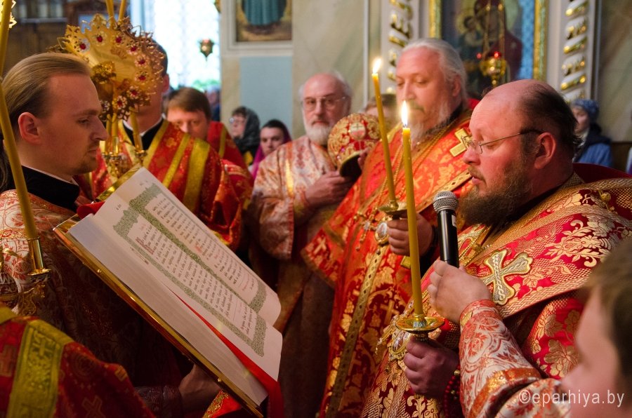 2 мая 2015г. в канун 4-ой недели по Пасхе, о расслабленном епископ Гомельский и Жлобинский Стефан и епископ Золотоношский Иоанн, викарий Черкасской епархии совершили всенощное бдение в Свято-Петро-Павловском кафедральном соборе г.Гомеля. Преосвященным сослужили: секретарь Гомельской епархии протоиерей Георгий Алампиев и духовенство собора. |