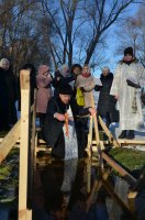 19 января в праздник Крещения Господня по окончании Божественной литургии настоятель прихода храма Преображения Господня в г. Светлогорске протоиерей Александр Кисель совершил чин великого освящения воды в водосвятнице храма и поздравил всех верующих с праздником Крещения. Затем благочинный Светлогорского округа возглавил крестный ход от храма Преображения Господня к спасательной станции ОСВОД на реке Березина, где также совершил чин великого освящения воды. Все желающие по народной традиции смогли окунуться в крещенской купели. |
