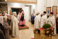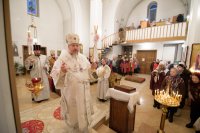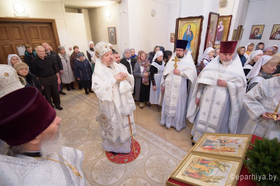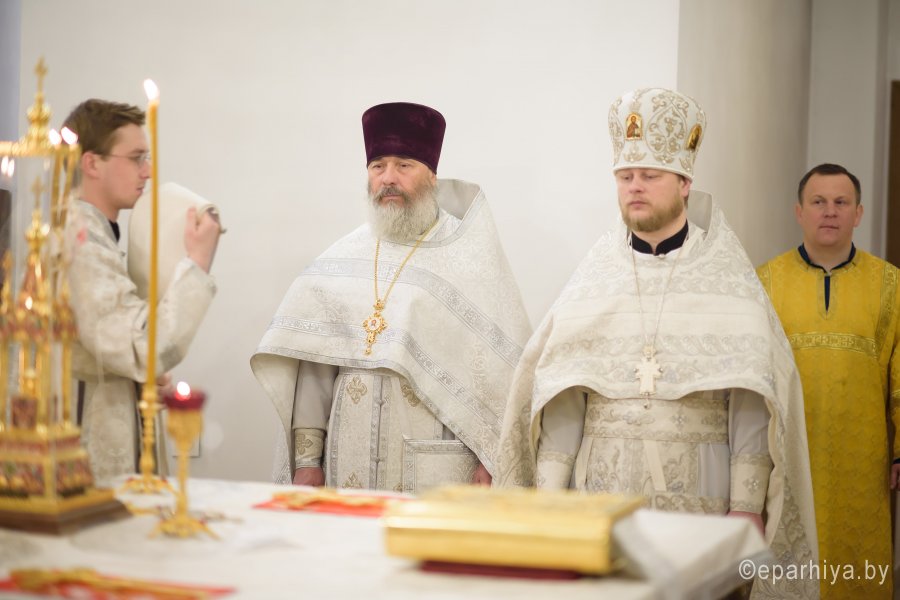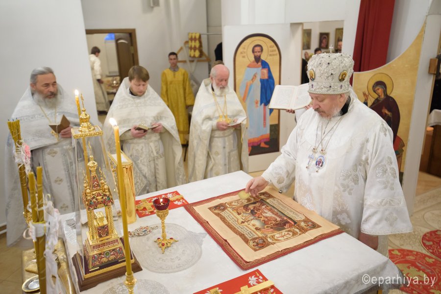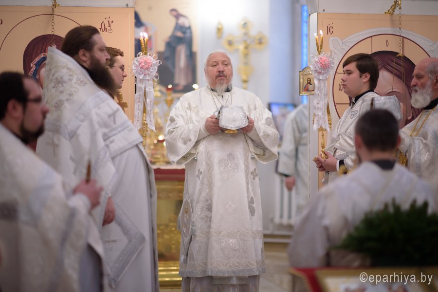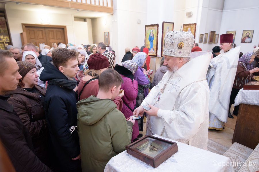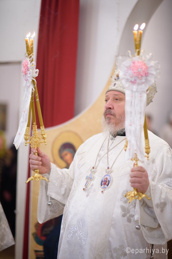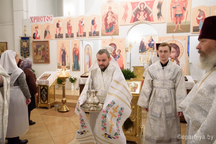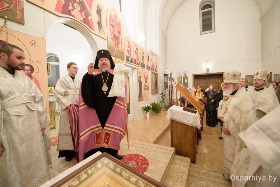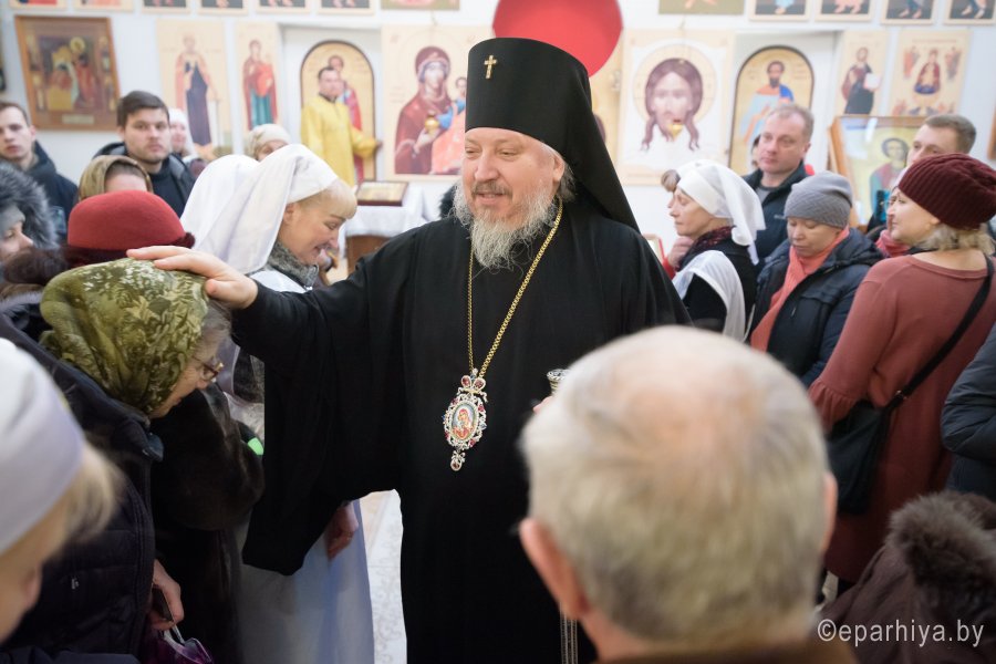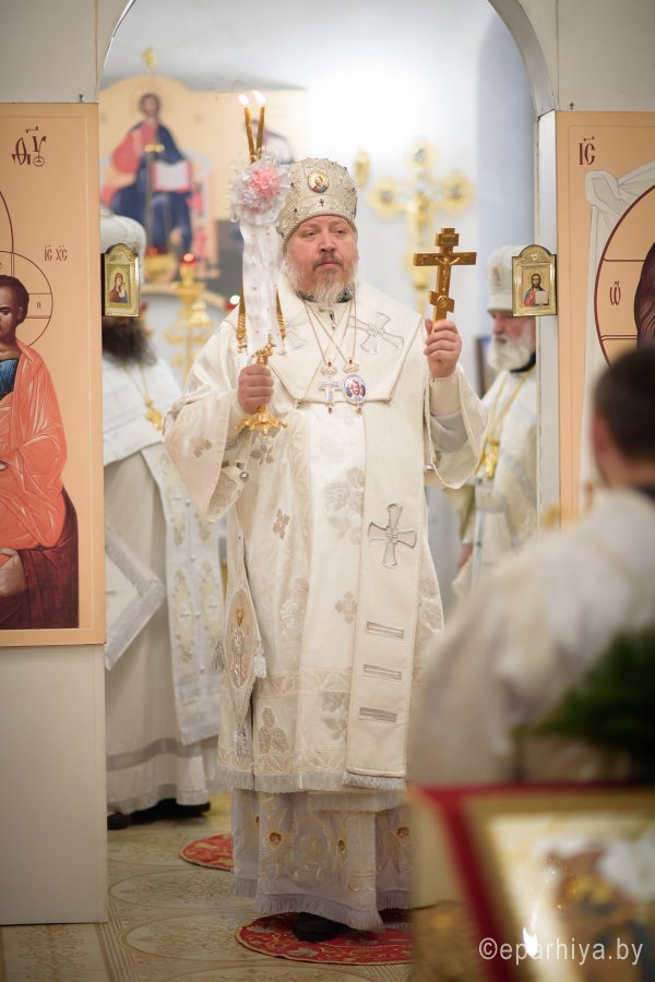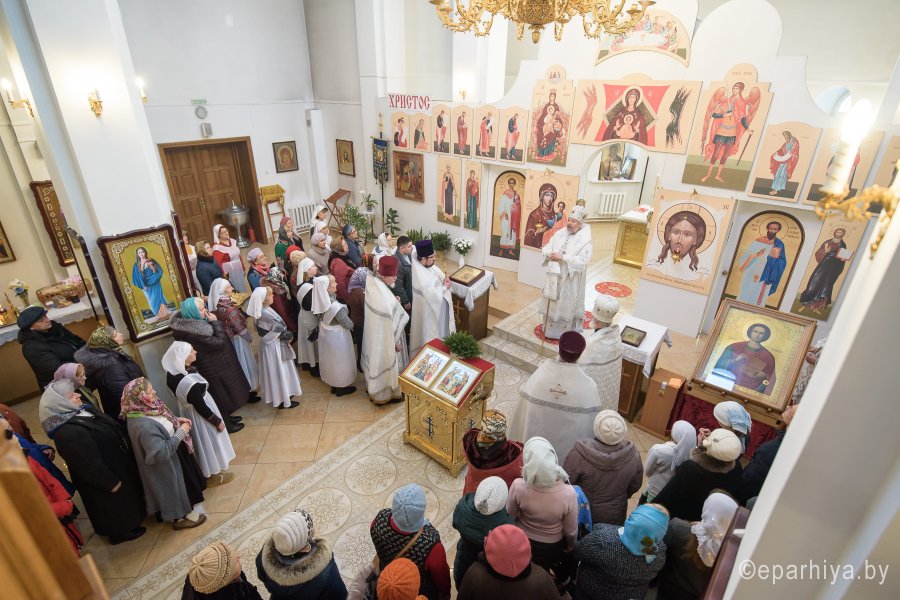Божественную литургию в попразднство Крещения Господня 20 января 2019г. Высокопреосвященный Стефан совершил в храме святого великомученика и целителя Пантелеимона г. Гомеля. Высокопреосвященному сослужили: секретарь Гомельской епархии протоиерей Георгий Алампиев, благочинный монастырей Гомельской епархии архимандрит Амвросий (Шевцов), духовник епархии протоиерей Стефан Гладыщук, благочинный Гомельского городского округа протоиерей Игорь Ольшанов, настоятель храма протоиерей Владимир Сулимов и духовенство епархии. По окончании богослужения Владыка поздравил причастников с принятием Святых Христовых Таин, совершил чин освящения колоколов и в память об этом дне раздал всем присутствующим иконки. |