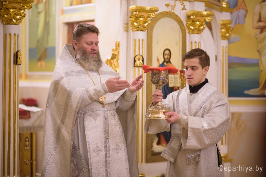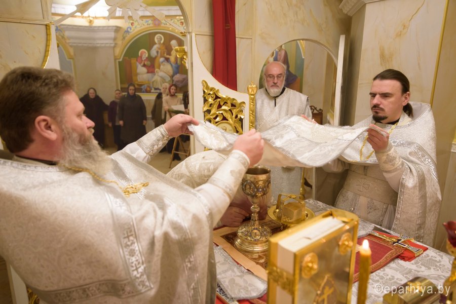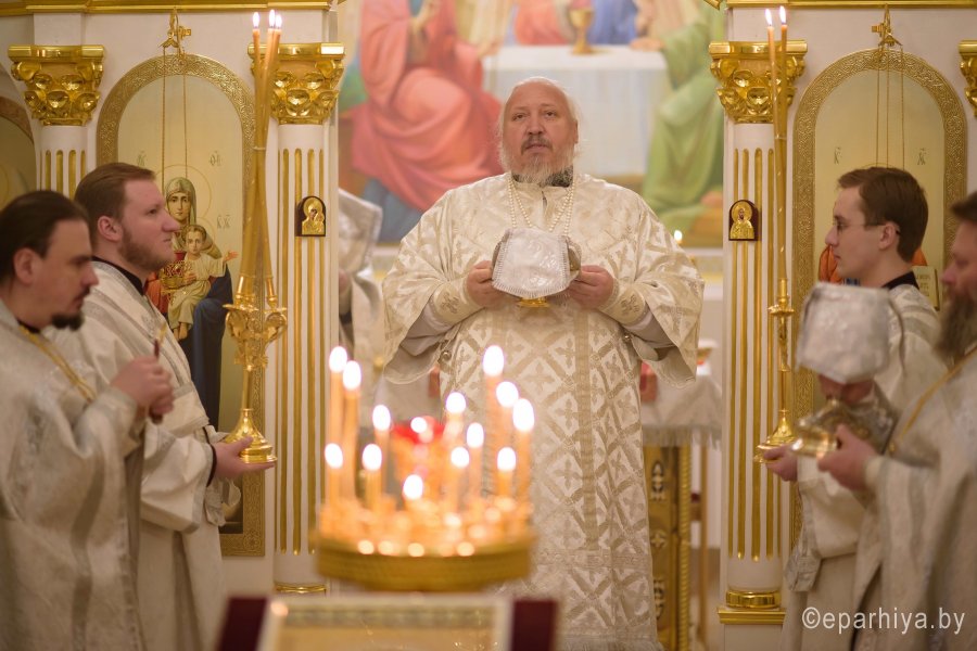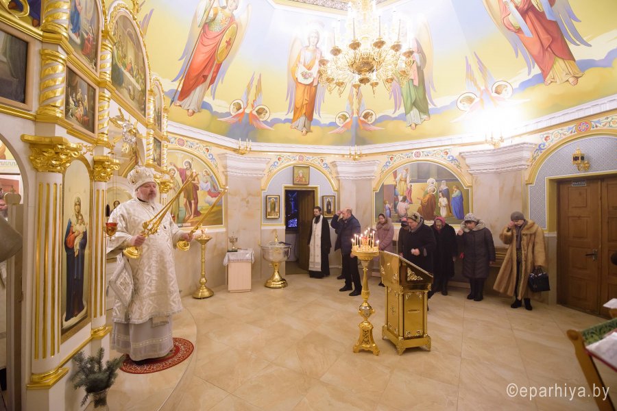 Божественную литургию во вторник 35-й седмицы по Пятидесятнице 22 января 2019г. Высокопреосвященный Стефан в сослужении духовенства собора совершил в крестильном храме Петро-Павловского кафедрального собора г.Гомеля. По окончании богослужения Владыка поздравил причастников с принятием Святых Христовых Таин и обратился к молящимся со словами Архипастырского назидания. |