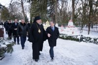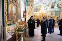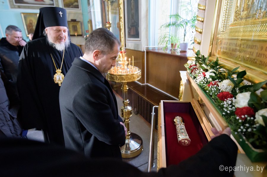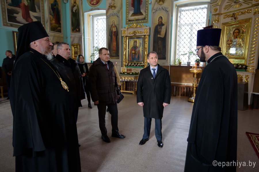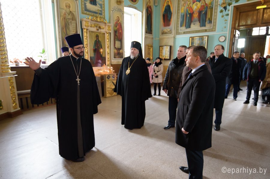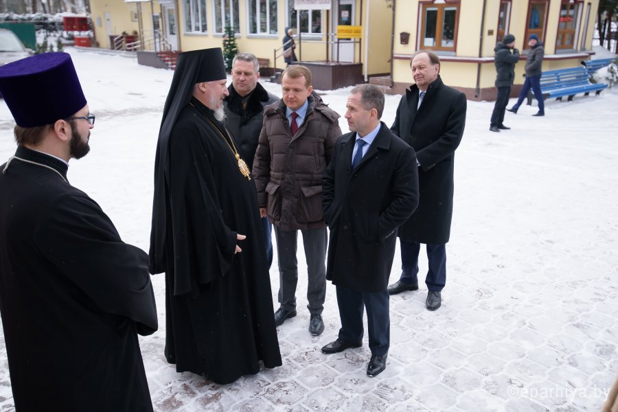 В рамках своего визита в г.Гомель 23 января 2018г. Чрезвычайный и Полномочный Посол Российской Федерации в Республике Беларусь Михаил Викторович Бабич посетил Петро-Павловский кафедральный собор в г.Гомеле, где состоялась встреча с Высокопреосвященнейшим Стефаном, в ходе которой Владыка ознакомил Михаила Викторовича с православными традициями Гомельщины, социальной и благотворительной работой, проводимой в Гомельской епархии, а протоиерей Александр Лопушанский провел для гостей экскурсию по храмовому комплексу и ознакомил со святынями собора. |