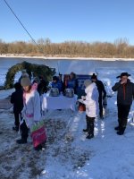 19 января в день Богоявления Господня в благочинии Гомельского районного округа совершили Крестные ходы на водоемы и освятили купели для желающих окунуться в праздничные Крещенские дни. Приход храма Тихвинской иконы Божией Матери в д. Ченки В д. Ченки к празднику Крещения Господня напротив храма на р. Сож была организована купель. В Крещенский сочельник по окончании вечернего богослужения крестным ходом люди прошли к купели для освящения воды и желающих окунуться. Всю ночь и утро вокруг купели было многолюдно. Были сделаны палатки с раздевалками, организованы чай и блины. Присутствующим все очень понравилось. Силами прихода и особенно с помощью Кузьменко Александра Михайловича заместителя начальника санатория Ченки было организованно все необходимое для водоосвящения и купания. Приход храма Покрова Пресвятой Богородицы д. Долголесье 19 января для жителей д. Долголесье было совершено освящение воды и купели благочинным Гомельского районного округа протоиереем Артемием Кривицким в сослужении иерея Станислава Смоляка. Все желающие могли набрать Великой святыни, а также искупаться в купели. При поддержке КСУП «Урицкое» для гостей праздника был обустроен теплый вагончик для переодевания и организованы горячие напитки. Приход храма прп. Никиты Исповедника в аг. Поколюбичи 18 - 19 января 2019 года, в день Крещения Господа нашего Иисуса Христа, в храме прп. Никиты исповедника, епископа Халкидонского в аг. Поколюбичи состоялся Крестный ход на "Иордань" - территорию водосвятной купели, которая расположена на месте где «бьют» природные водные ключи где было совершенно Великое освящение воды. После все желающие могли окунуться в купели и набрать освящённой воды. Здание купели деревянное, 2-е тёплые раздевалки, удобный спуск к воде. Также рядом с купелью, для всех желающих была организована раздача горячего чая. Приход храма Вознесения Господня в п. Новая Гута 18 января 2019 года. По окончании богослужения настоятель иерей Павел Брагинец возглавил традиционный крестный ход на святой источник, где было совершен чин великого освящения воды , после чего настоятель поздравил верующих с праздником Богоявления. |