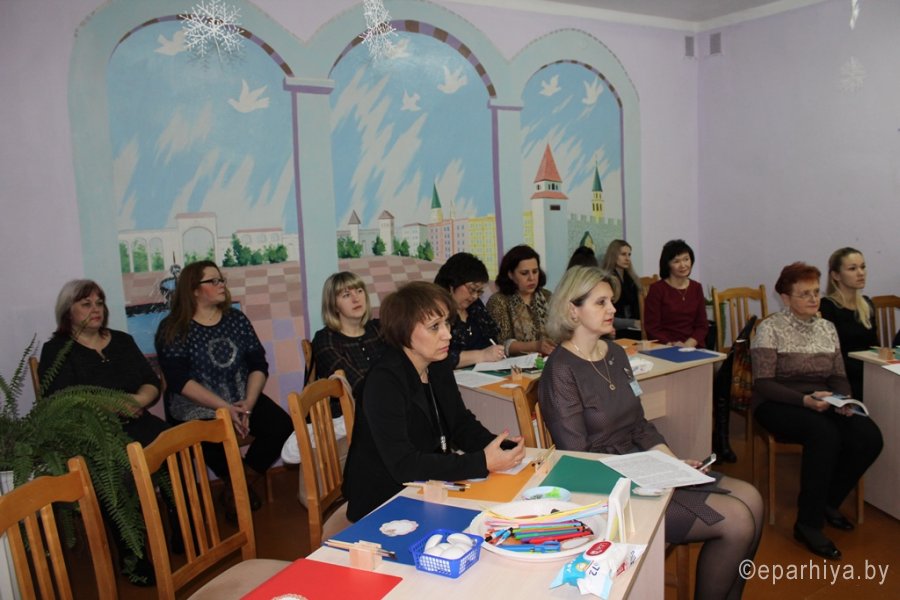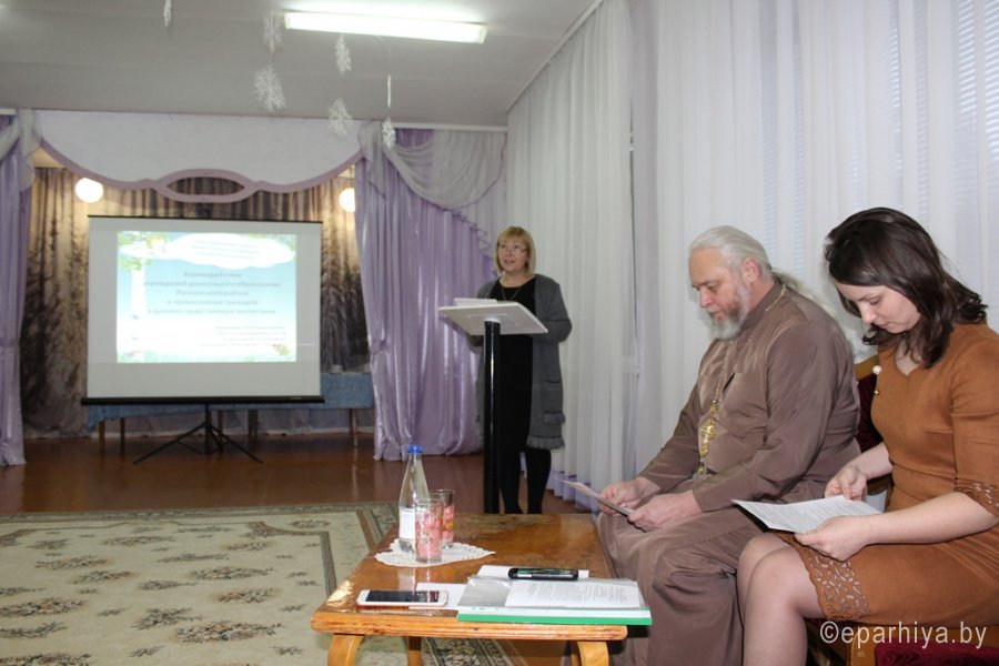 31 января 2019 г. протоиерей Алексей Смотрицкий, настоятель прихода храма святого благоверного князя Александра Невского в г.Рогачёве, принял участие в семинаре-практикуме, состоявшемся в ГУО «Санаторный ясли-сад №4 г.Рогачёва». Семинар проводился для педагогических работников, организующих духовно-нравственное воспитание в учреждениях дошкольного образования. Во время работы методической площадки педагоги рассмотрели теоретические и практические аспекты сотрудничества, познакомились с опытом работы коллег. Бакадорова Нина Владимировна, заместитель заведующего по основной деятельности ГУО «Ясли-сад №7 г.Рогачёва», познакомила участников семинара с формами сотрудничества между учреждением дошкольного образования и структурами Белорусской Православной Церкви в деле духовно-нравственного воспитания. Протоиерей Алексей Смотрицкий поделился своим видением путей развития дальнейшего сотрудничества в этой сфере. Практическую часть занятия школы профессионального мастерства представила Волчкова Алла Викторовна, музыкальный руководитель ГУО «Санаторный ясли-сад №4 г.Рогачёва», презентацией «Музыкальное сопровождение праздника Пасхи Христовой», созданной в результате работы педагогической мастерской для музыкальных руководителей. Скорых Регина Ермековна. воспитатель этого же учреждения образования, провела для педагогов мастер-класс «Пасхальный сувенир». Итоги работы семинара подвела методист РУМК Пашковская Наталья Андреевна. |