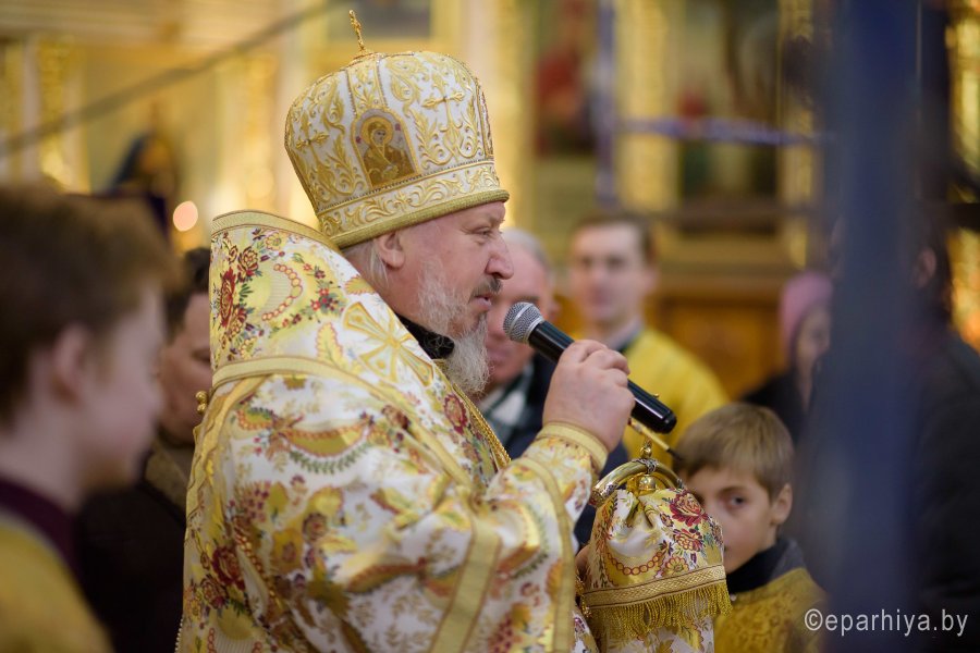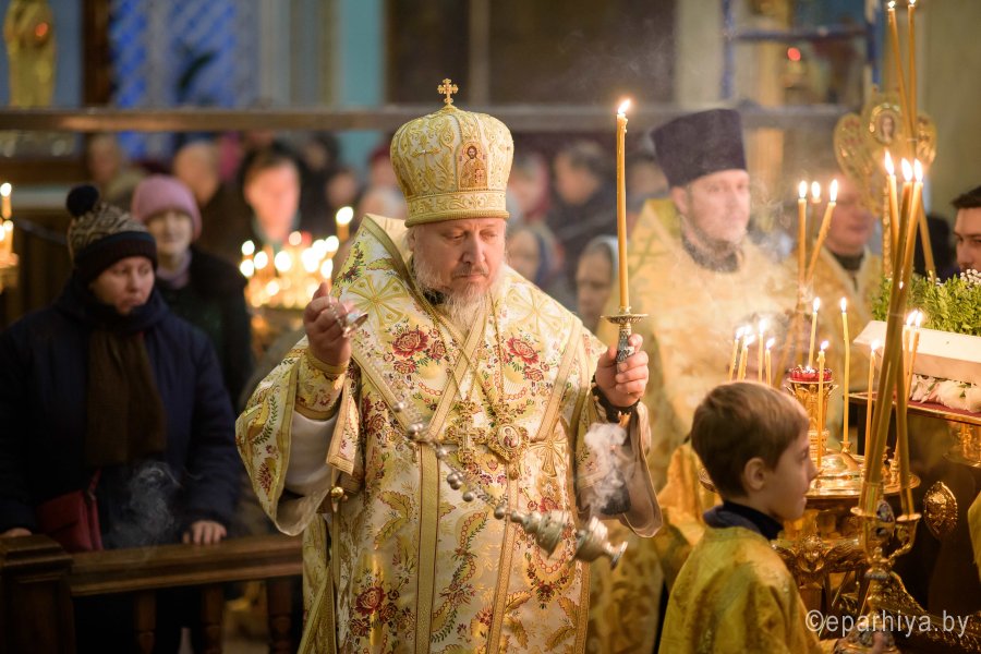 Всенощное бдение в канун Недели 36-й по Пятидесятнице 2 февраля Высокопреосвященный Стефан совершил в Петро-Павловском кафедральном соборе г.Гомеля в сослужении духовенства собора. Высокопреосвященному сослужили: секретарь Гомельской епархии протоиерей Георгий Алампиев и духовенство собора. По окончании богослужения Владыка обратился к молящимся со словами Архипастырского назидания. |