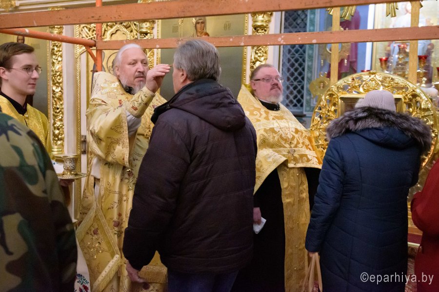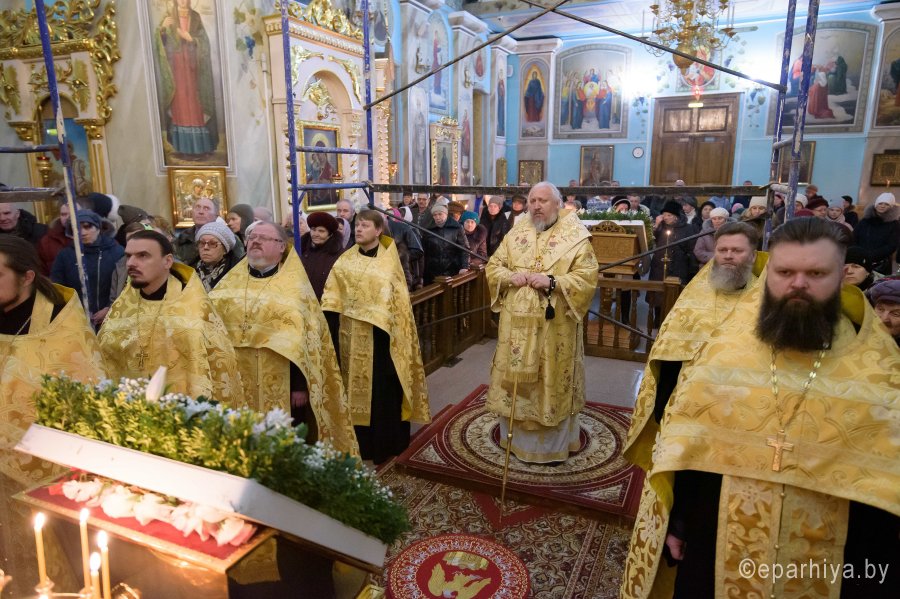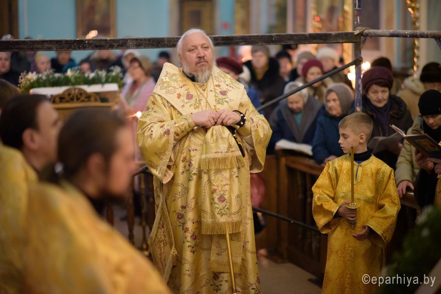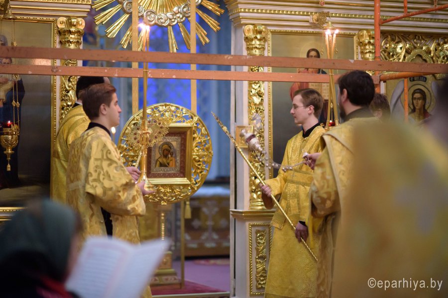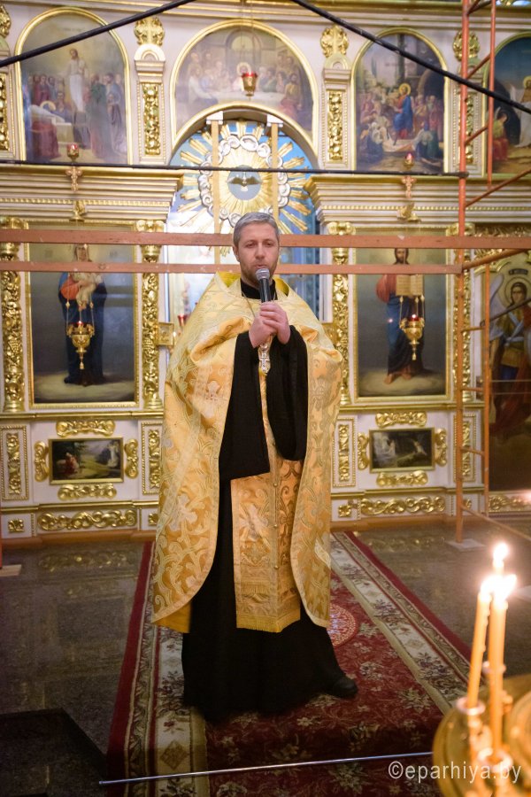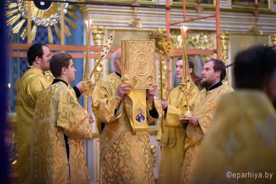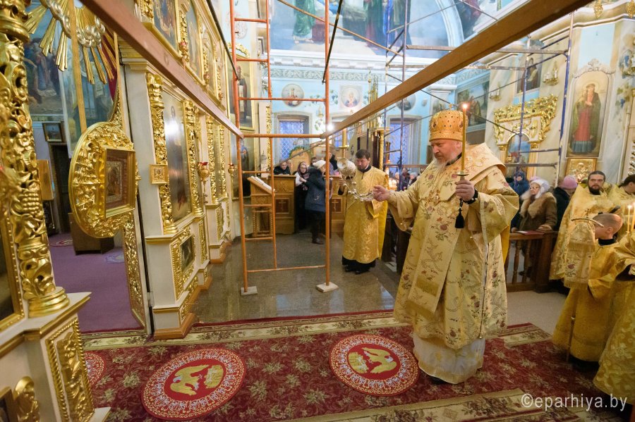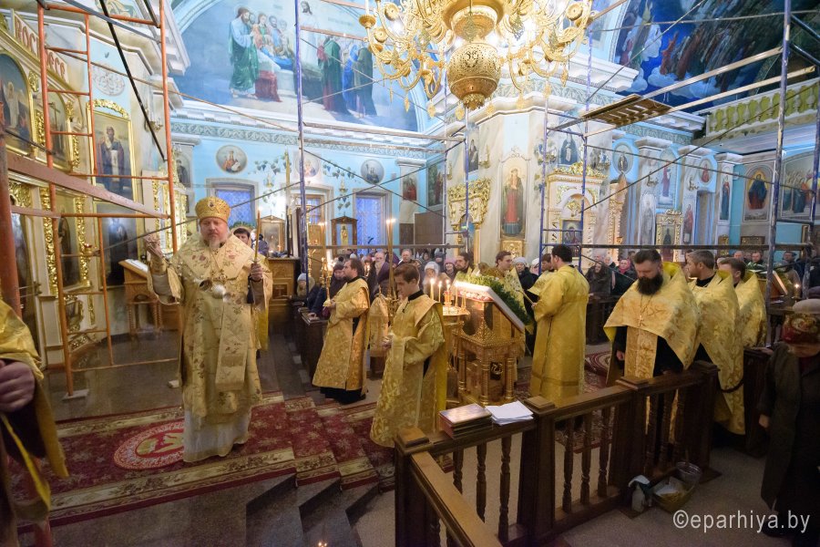 Вечернее богослужение с чтением акафиста нараспев Высокопреосвященнейший Стефан архиепископ Гомельский и Жлобинский совершил 4 февраля 2019г. в соборе святых апостолов Петра и Павла г. Гомеля в сослужении секретаря Гомельской епархии протоиерея Георгия Алампиева и духовенства собора. Со словами проповеди к молящимся обратился настоятель храма иконы Божией Матери "Грузинская" протоиерей Владимир Масалитин. По окончании богослужения Владыка обратился к присутствующим со словами Архипастырского назидания. |