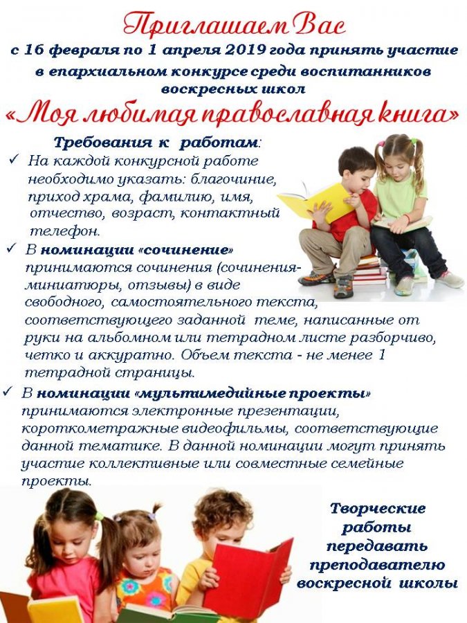 Епархиальный конкурс «Моя любимая православная книга» среди воспитанников воскресных школ