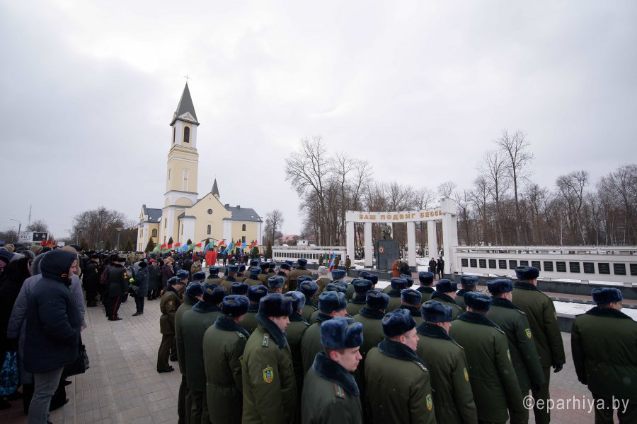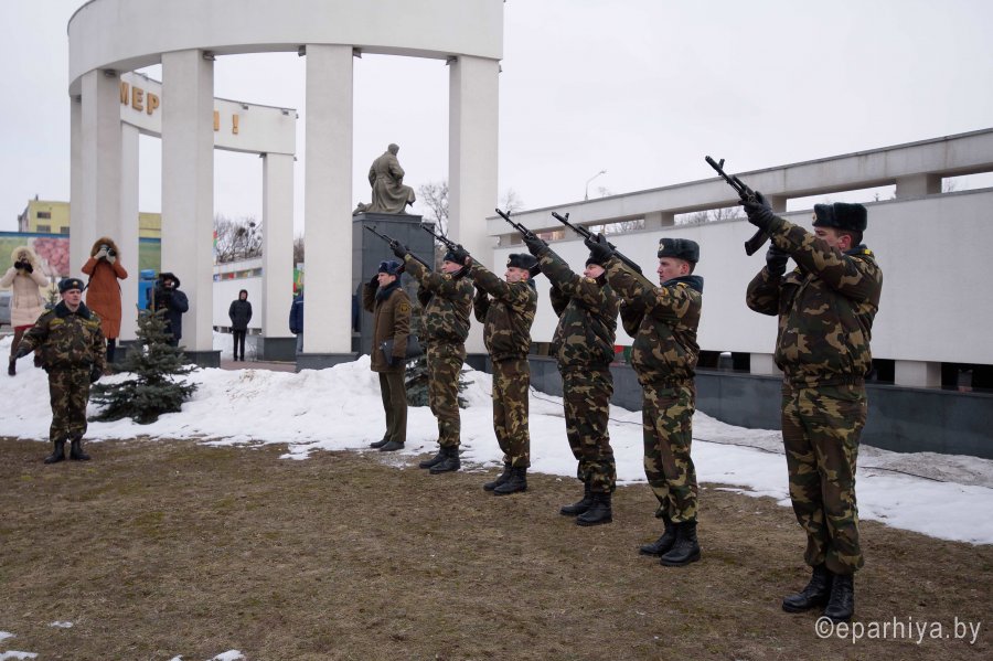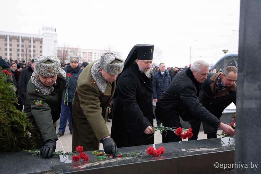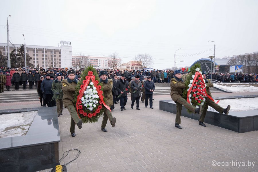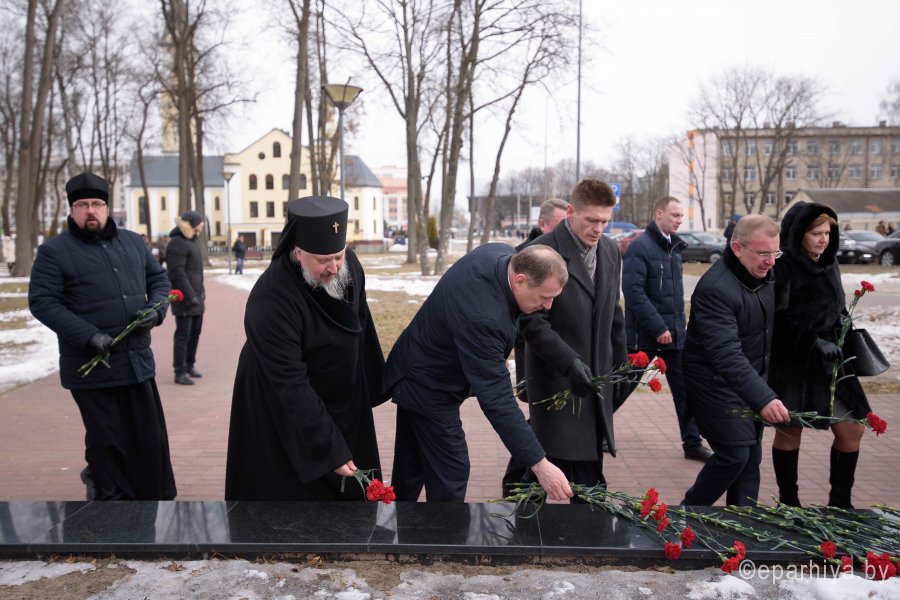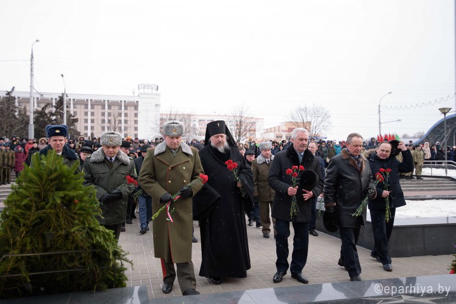 В преддверии Дня защитника Отечества Высокопреосвященнейший Стефан, архиепископ Гомельский и Жлобинский возложил цветы к мемориальному комплексу "Аллея героев" 22 февраля 2019 года. В торжественном митинге также приняли участие представители органов власти области и города, трудовых коллективов и общественных организации, воинских подразделений, ветераны Великой Отечественной войны, партизаны, подпольщики и труженики тыла. |
