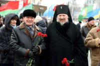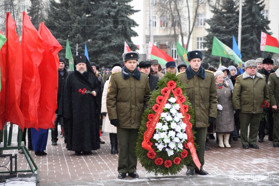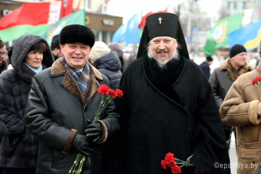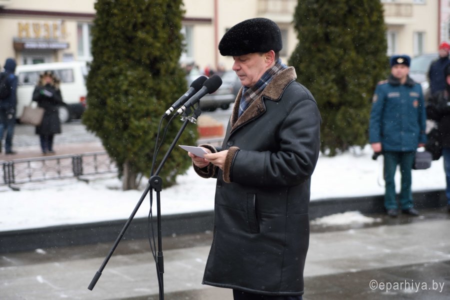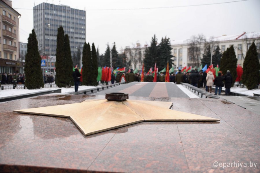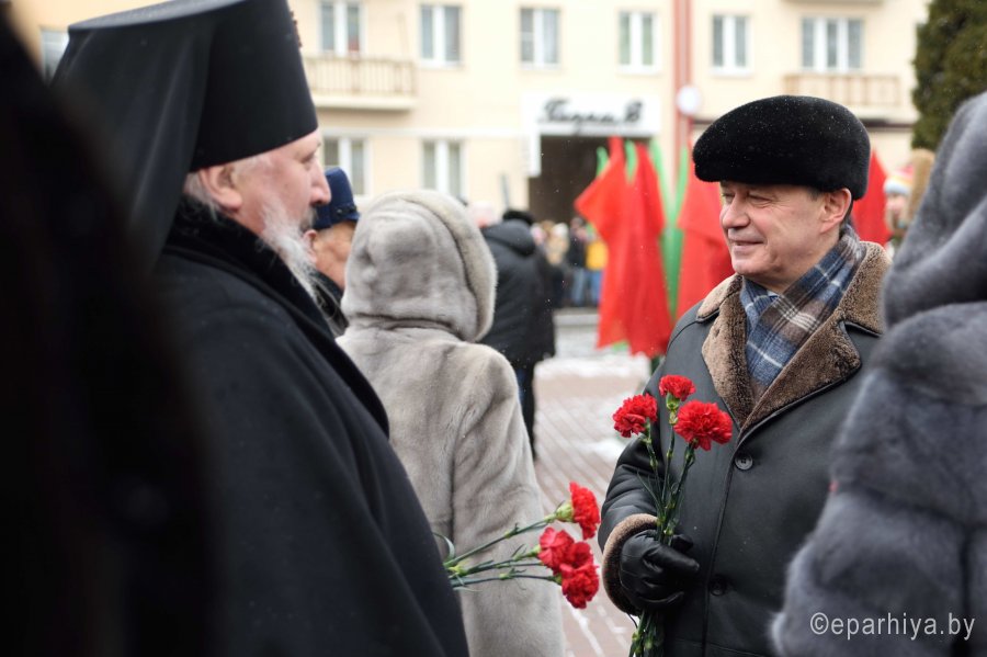 22 февраля 2019г., накануне Дня защитника Отечества Высокопреосвященнейший Стефан, архиепископ Гомельский и Жлобинский принял участие в торжественном митинге, прошедшем около мемориального комплекса «Вечный огонь». Руководство области и города, ветераны Великой Отечественной войны, бывшие партизаны и подпольщики, труженики тыла, представители трудовых коллективов, учебных заведений и общественных организаций, воинские подразделения пришли к мемориальному комплексу «Вечный огонь» на площади Труда, чтобы воздать дань мужеству защитников Отечества, вновь перелистнуть героические страницы истории Вооружённых Сил Республики Беларусь. Участников митинга приветствовал председатель Гомельского горисполкома Пётр Кириченко: - Этот день – праздник тех, кто своим бессмертным героизмом отстоял право нашего народа на свободу и возможность быть хозяином на родной земле. Всех, кто и сегодня стоит на страже национальной безопасности. Наша история неразрывно связана с историей воинства, а армия является неотъемлемой частью самого народа. К мемориальному комплексу возложены цветы и венки. Торжественным маршем прошли воинские подразделения. |