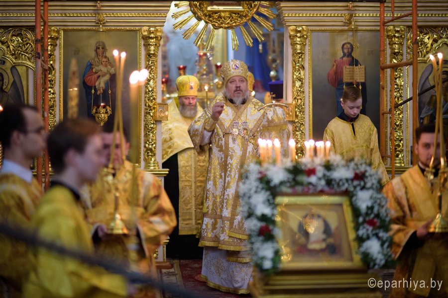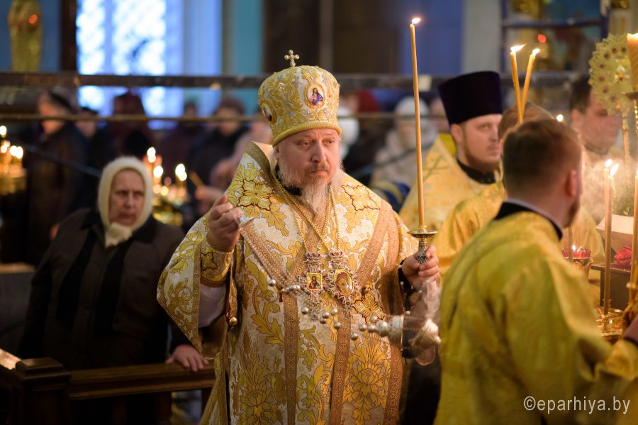 Всенощное бдение в канун Недели о блудном сыне 23 февраля 2019г. Высокопреосвященный Стефан совершил в Петро-Павловском кафедральном соборе г.Гомеля. Высокопреосвященному сослужили: секретарь Гомельской епархии протоиерей Георгий Алампиев и духовенство собора. По окончании богослужения Владыка обратился к молящимся со словами Архипастырского назидания. |