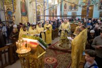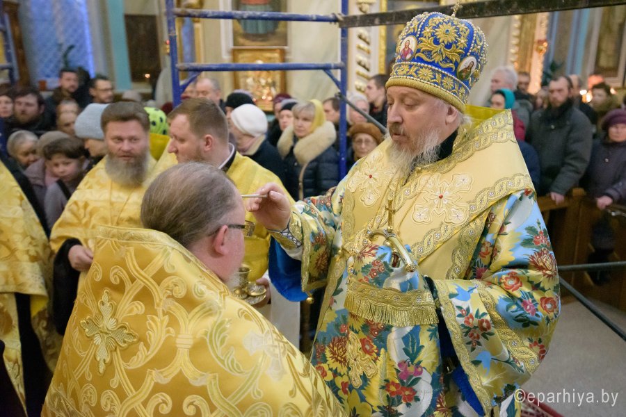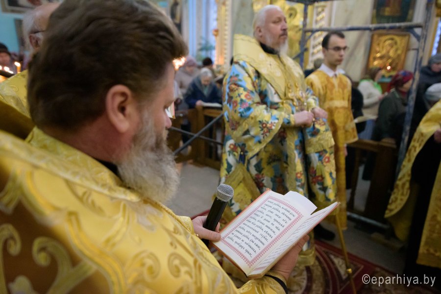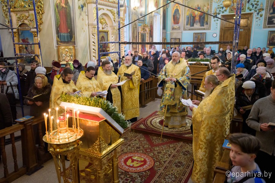 Вечернее богослужение с чтением акафиста нараспев Высокопреосвященнейший Стефан архиепископ Гомельский и Жлобинский совершил 25 февраля 2019г. в соборе святых апостолов Петра и Павла г. Гомеля в сослужении духовенства собора. По окончании богослужения Владыка обратился к присутствующим со словами Архипастырского назидания. |