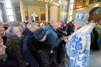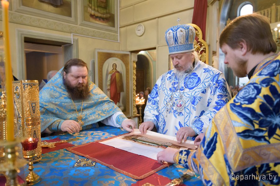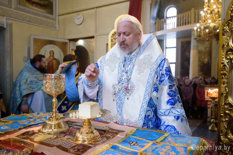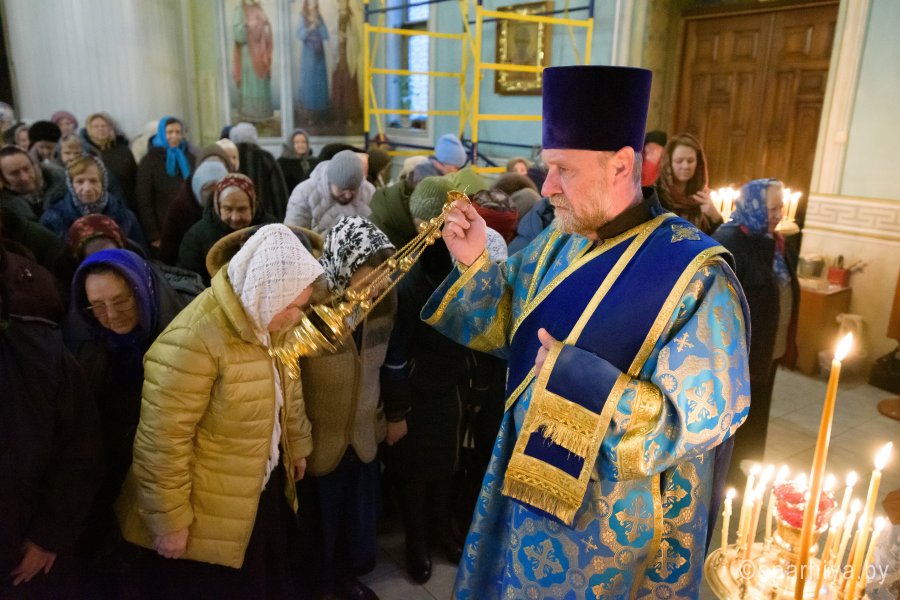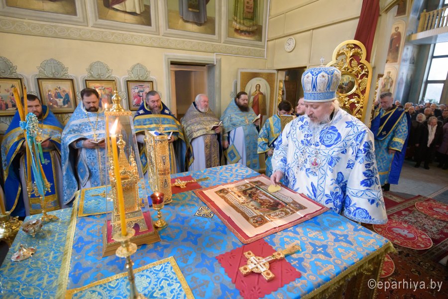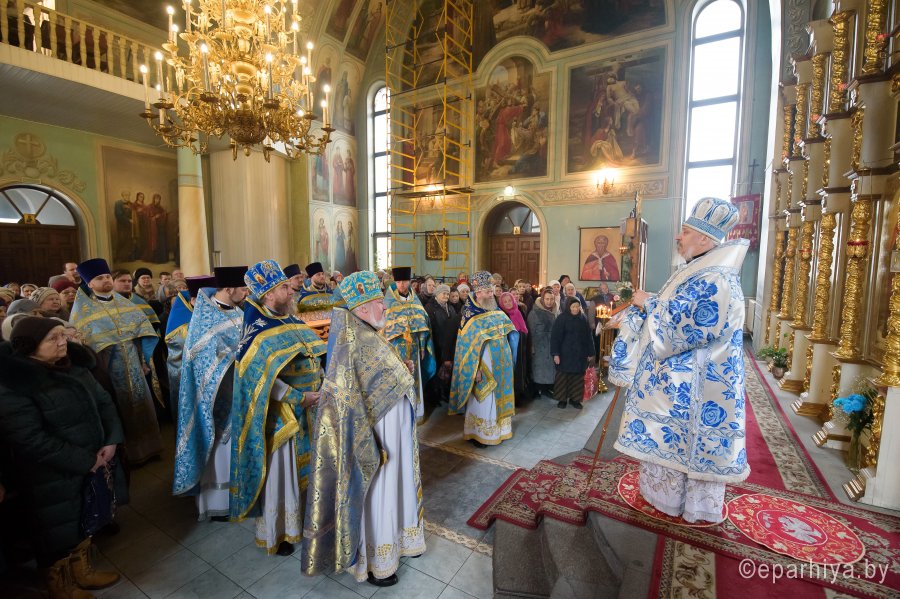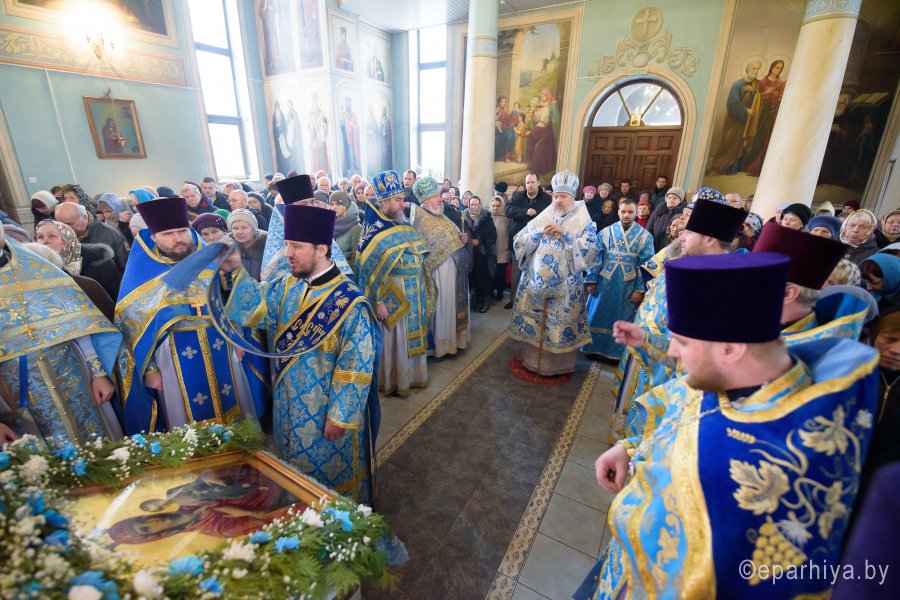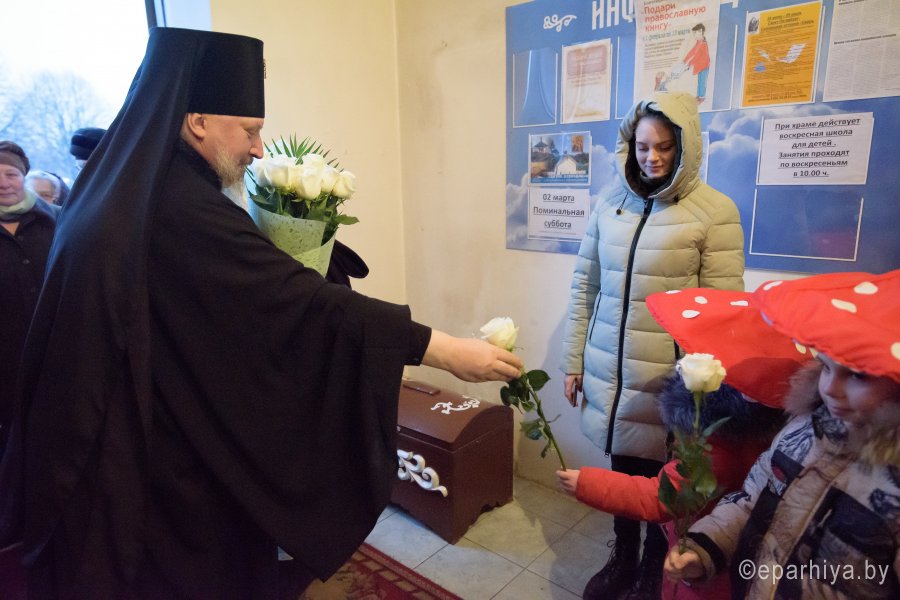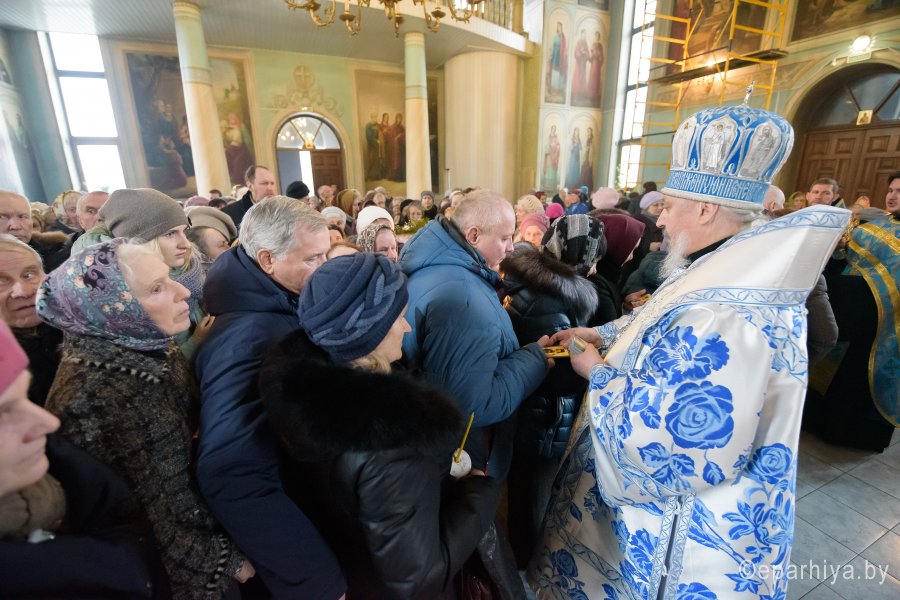 Божественную литургию в праздник иконы Божией Матери "Иверская" 25 февраля 2019г. Высокопреосвященный Стефан совершил в одноименном храме г.Гомеля. Высокопреосвященному сослужили: секретарь Гомельской епархии протоиерей Георгий Алампиев, благочинный монастырей Гомельской епархии архимандрит Амвросий (Шевцов), председатель отдела по архитектуре и строительству протоиерей Георгий Тур, председатель отдела по социальной работе и благотворительности протоиерей Владимир Силенко, эконом Гомельской епархии протоиерей Владимир Масалитин, благочинный Гомельского районного округа протоиерей Артемий Кривицкий и духовенство епархии. По окончании богослужения Владыка поздравил причастников с принятием Святых Христовых Таин и обратился к молящимся со словами Архипастырского благословения. |