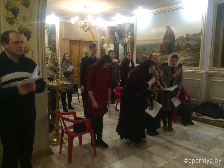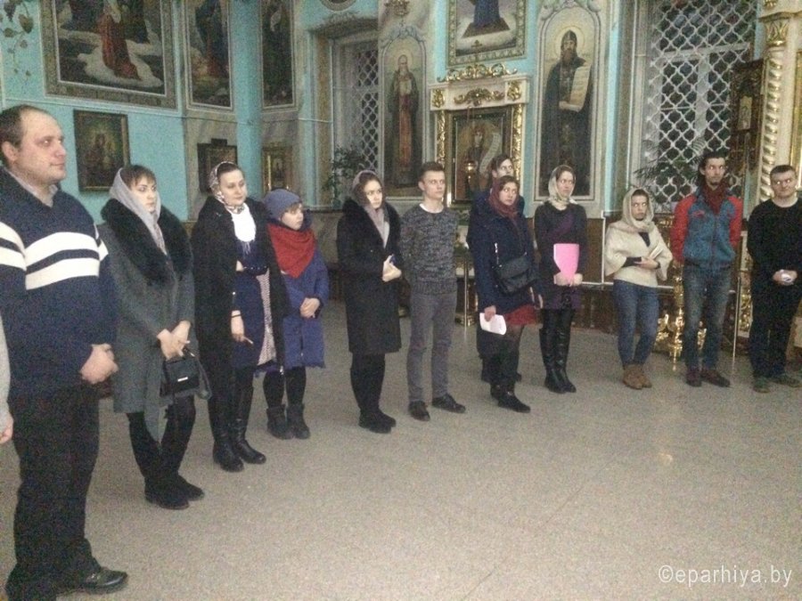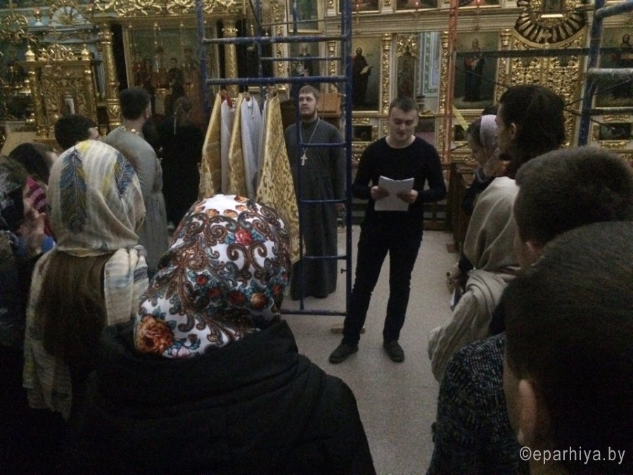 В ночь с 22 на 23 февраля, в Петро-Павловском кафедральном соборе в г.Гомеле, в преддверии Зимнего слета православной молодежи, состоялась ночная Божественная литургия с участием представителей молодежных групп приходов храмов города Гомеля. Необычная молодежная встреча под названием «Ночь в храме» началась со встречи молодежи со священнослужителями в Нижнем храме собора, после чего была проведена экскурсия по собору с освещение таких тем, как история кафедрального собора, облачения священников, Богослужебные книги, Церковная утварь и Богослужебные сосуды, житие преподобной Манефы Гомельской. Примечательно, что экскурсию проводили не только священнослужители, но и участники группы православной молодежи «ИХФИС». Главным событием необычной молодежной встречи «Ночь в храме» стала Божественная литургия. Особенностью стало то, что песнопения и чтения во время Божественной литургии были исполнены присутствующей молодежью. После Богослужения все участники встречи вместе со священнослужителями продолжили общение на дружеском чаепитии в конференц-зале собора. Молодежная встреча, прошедшая в новом необычном формате, получила большое количество положительных отзывов от присутствующих. |