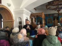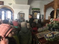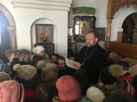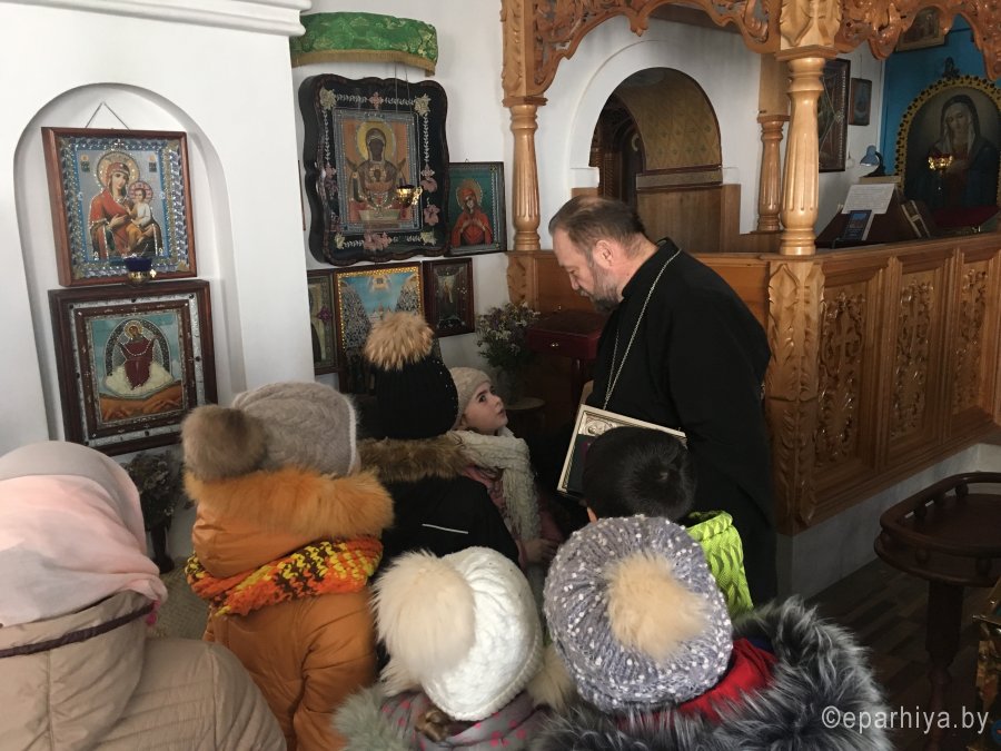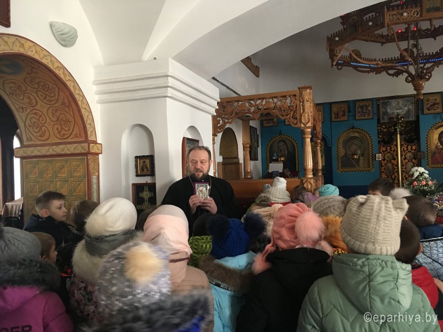 25 февраля 2019 года в рамках мероприятий ко Дню православной книги в храме прп. Серафима Саровского в г. Гомеле прошла встреча с учащимися 3-их классов СШ №45. Клирик храма иерей Сергий Силивончик провел для детей экскурсию и ознакомил с основными богослужебными книгами. Встреча проходила в живом диалоге, возраст третьего класса позволял не смущаться и забрасывать батюшку вопросами. Особенно юных прихожан интересовало, в честь какого святого они названы. |