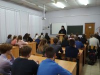В Жлобинском благочинии в государственном учреждении образования «Средняя школа № 13 г. Жлобина» состоялась встреча настоятеля храма великомученика Иоанна Воина иеромонаха Кронида (Печевистого) с учениками 8 классов. На территории Белорусской Православной Церкви 2019 год объявлен «Годом памяти Полоцкого объединительного собора 1839 года». По учению Церкви в жизни никогда не бывает вещей случайных, но все, даже самое незначительное и второстепенное, ниспослано для нашего спасения. А для великих дел Бог посылает и людей великих. Людей, готовых трудиться на благо Церкви самозабвенно, жертвенно, невзирая на препятствия и злоключения. Не случайно и для воссоединения в 1839 году Промыслом Божиим был выделен из среды униатского духовенства православный по духу архиерей Иосиф (Семашко). Митрополит Иосиф – одна из самых значительных фигур в конфессиональной истории Беларуси. Рожденный в униатстве, получивший польское воспитание и католическое богословское образование, он способствовал возвращению к православному вероисповеданию полутора миллионов белорусских и украинских униатов, которое произошло в 1839 году, и в исторической литературе получившего название «воссоединение». Благодаря деятельности владыки по упразднению унии православными стали свыше полутора миллионов человек. Возвращение православия знаменовало возвращение к своим культурным истокам, сохранение традиций и неповторимого менталитета белорусского народа. И сегодня, как никогда, очень важно каждому из нас знать свою историю, чтобы не допустить ошибок, которые остались в прошлом, но жить в мире, любви и согласии с нашими ближними. Опираясь на исторические события, священник говорил об отношениик православному вероисповеданию, исполнении Заповедей Божиих. О том, чтобы мы любили Бога всем нашим сердцем, всем нашим умом, всем нашим естеством и ближнего своего любили, как самого себя, так как именно любовь способна созидать и соединять вся и всех. Иеромонах Кронид пожелал всем учащимся помощи Божией и успехов в учебе и трудах во Славу Божию. |