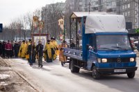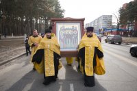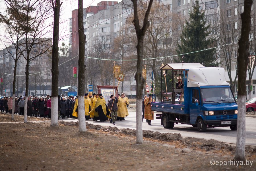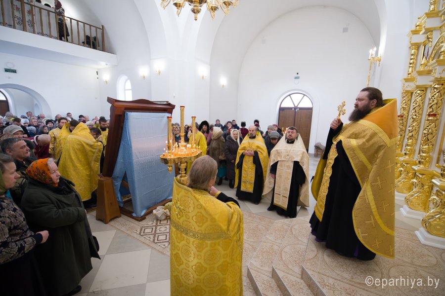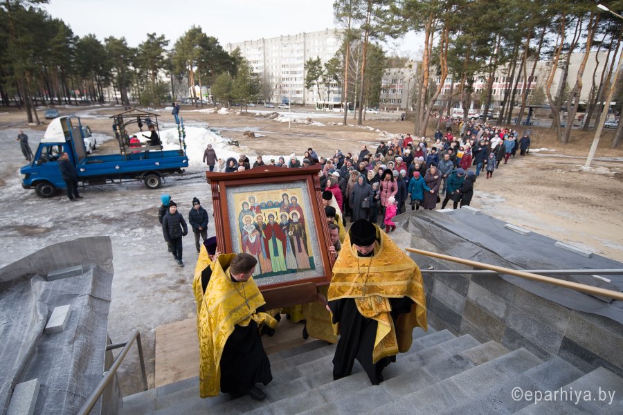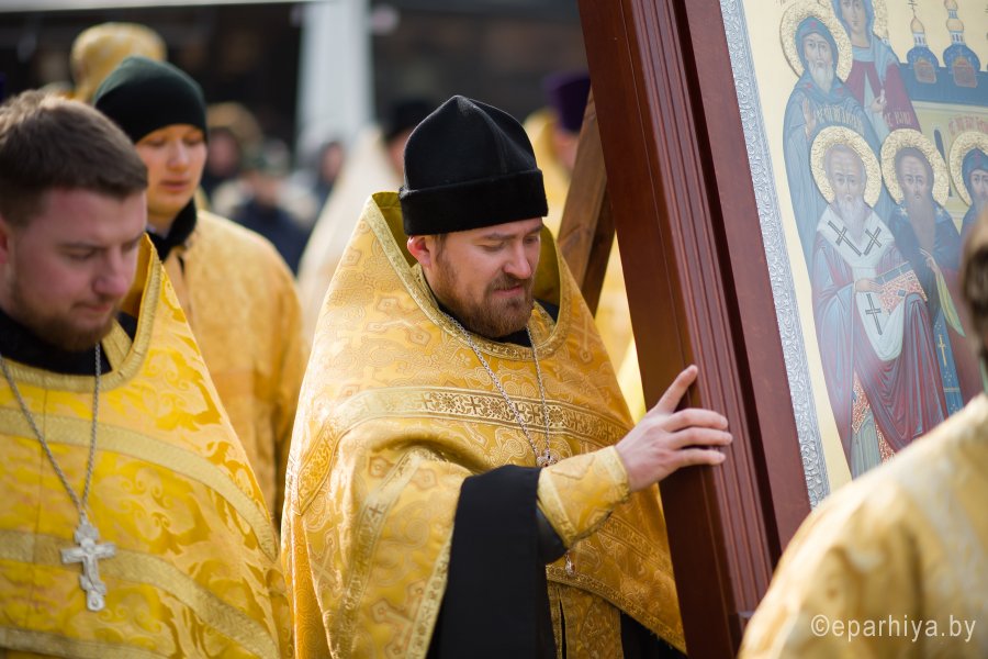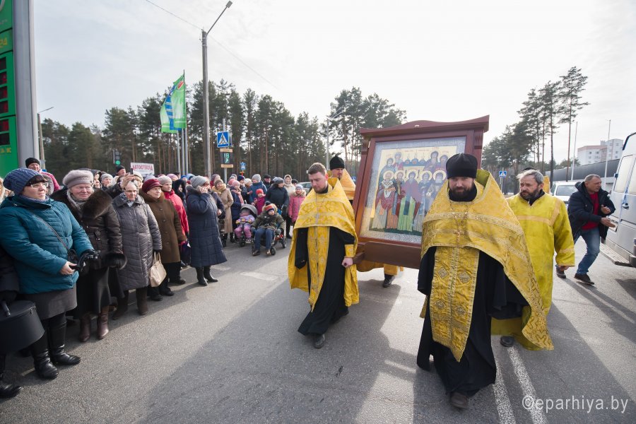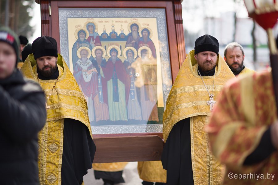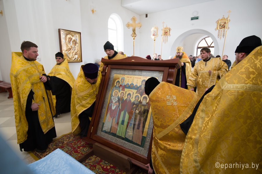 3 марта в город Светлогорск из Свято-Успенского Псково-Печерского монастыря была доставлена икона Собора Псково-Печерских святых с частицей мощей святого преподобного Симеона. Икона Собора Псково-Печерских святых по благословению настоятеля Псково-Печерского монастыря митрополита Тихона (Шевкунова) была передана в дар храму святителя Кирилла Туровского в г. Светлогорске и по инициативе прихожанина храма Сачивко Владимира Александровича привезена в город Светлогорск. Святыню крестным ходом пронесли по улицам города к храму святителя Кирилла Туровского в г. Светлогорске. Возглавил крестный ход благочинный монастырей Гомельской епархии архимандрит Амвросий (Шевцов), благочинный Светлогорского округа протоиерей Александр Кисель, настоятель прихода храма святителя Кирилла Туровского в г. Светлогорске протоиерей Сергий Кисель и духовенство округа. В молитвенном шествии приняли участие более 300 человек. В храме святителя Кирилла Туровского в г. Светлогорске был совершен акафист с елеопомазанием. Все верующие смогли приклониться к святыне. |