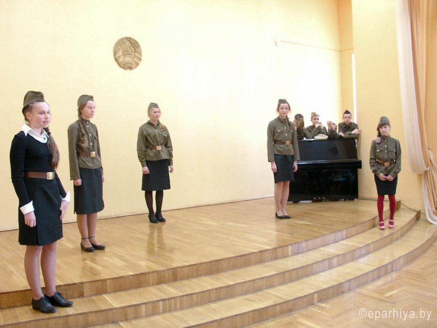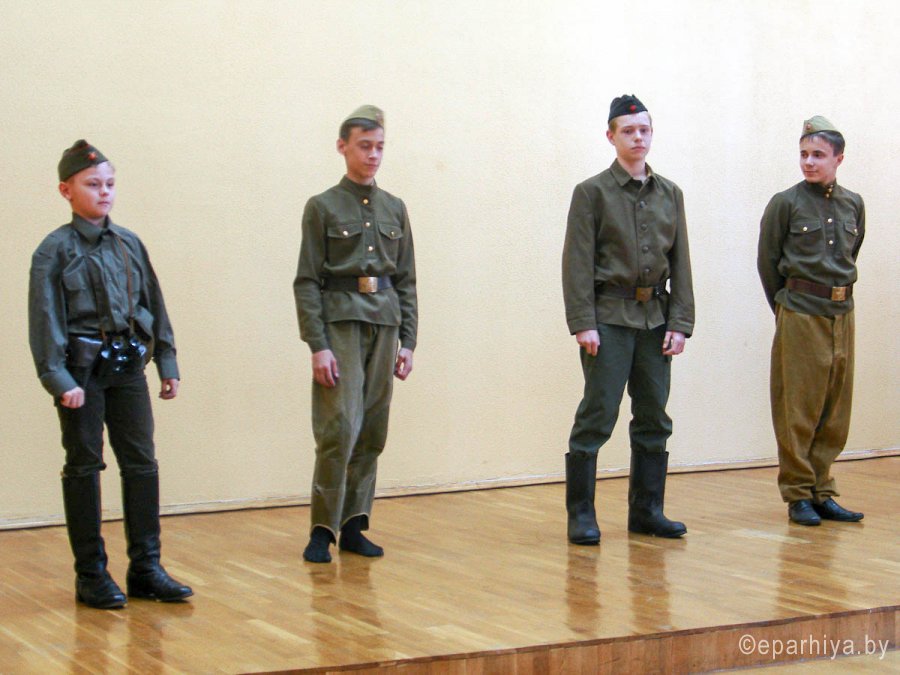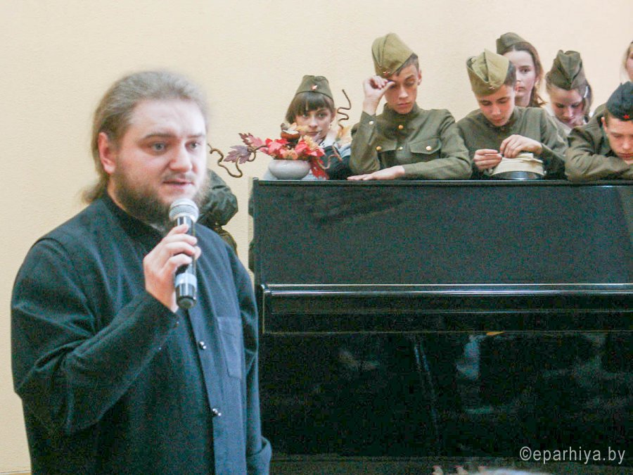«Над миром вновь, бушует вечный май. В который раз мы празднуем победу, Но то, что совершили наши деды, Ты помни, никогда не забывай», - эти слова песни на стихи О.Ткач можно поставить эпиграфом к необычному концерту, который состоялся 5 мая 2015 года в Гомельской центральной городской библиотеке им. А. И. Герцена по инициативе Свято-Никольского мужского монастыря. Концертный вечер носил название «Песни Победы» и был посвящен 70-летию Победы нашего народа в Великой Отечественной войне, а необычность концерта состояла в том, что зрители были не только пассивными созерцателями происходящего на сцене, но и сами активно включались в пение известных песен военной поры. «Песни Победы, песни войны, все наши мысли о войне достойны, пожалуй, только молчания. Это как в богословии - о чем нельзя или трудно говорить следует молчать. Это очень трагичные страницы истории и глубокий опыт, который запечатлевается в мудрых красивых и неисчерпаемых образах. Сегодня, к великому сожалению, вокруг темы войны слишком стало много вранья, лукавства и политики, и мы вынуждены говорить, молчать просто не имеем права. Будем помнить подвиг наших дедов, отцов, матерей и бабушек, будем к нему возвращаться и петь песни Победы», - сказал архимандрит Савва (Мажуко), приветствуя собравшихся. Концерт подготовлен силами библейской студии Свято-Никольского мужского монастыря, молодежного братства обители, студентов Гомельского государственного университета им. Ф.Скорины. Техническое обеспечение концерта осуществляли сотрудники библиотеки. Воспитанники библейской студии представили на суд зрителей отрывок из поэмы А. Твардовского «Василий Теркин» и стихи Ю. Друниной. Студенты университета развернули целую поэтическую композицию, «приправив» ее чудесным пением сестер Виноградовых – Ирины и Марины. Девушки и ребята из молодежного хора монастыря порадовали трогательным исполнением знакомых с детства песен «Алёша», «Здесь птицы не поют», «Тёмная ночь», «Многая лета». А зрители не только подпевали талантливым артистам, но и отвечали ребятам дружным и задорным исполнением военных песен под аккордеон. |