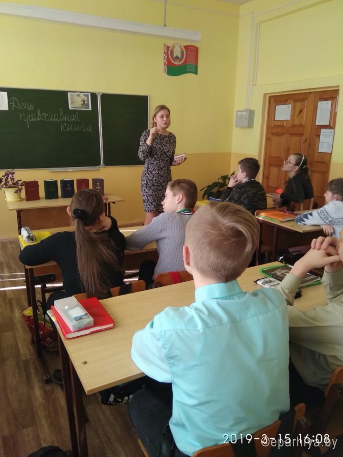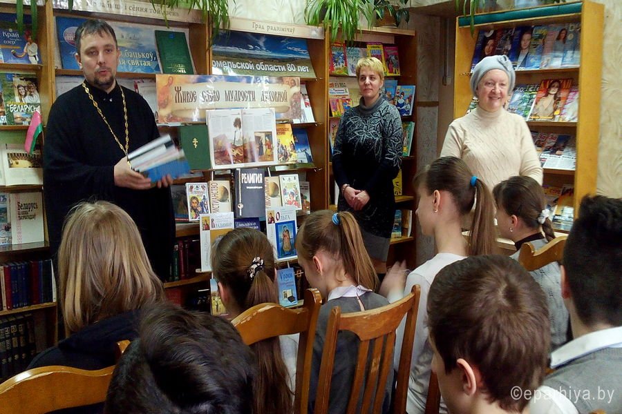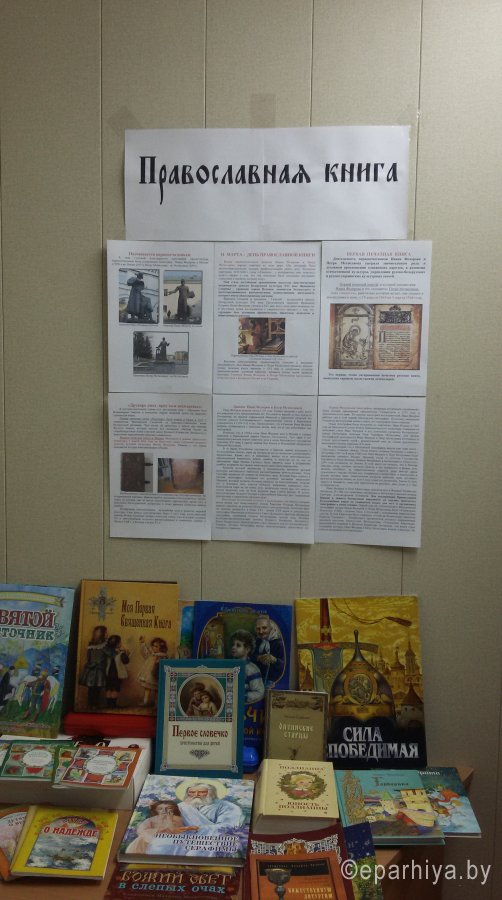 День православной книги знаменует признание огромного значения духовной литературы в воспитании нравственных качеств личности, в приобщении каждого к тысячелетней христианской традиции. В Гомельской епархии состоялось множество мероприятий, посвященных Дню православной книги. Первая часть мероприятий. Светлогорское благочиние 15 марта в рамках празднования Дня православной книги в ГУО «Средняя школа № 3 г. Светлогорска» состоялся классный час для учащихся 7 класса, который провела педагог-психолог учреждения образования Анастасия Анатольевна Капошко. В завершение встречи Анастасия Анатольевна пригласила ребят посетить библиотеку прихода храма святителя Кирилла Туровского в г. Светлогорске, чтобы ознакомиться с новинками православной литературы. 16 марта клирик прихода храма Преображения Господня иерей Евгений Новик встретился с учащимися 4 и 5 классов ГУО «Средняя школа № 2 г. Светлогорска». Священник рассказал ребятам об истории праздника, о Великом посте и о священной для всех православных христиан Книге – Библии. 16 марта в Неделю православной книги настоятель прихода храма святой мироносицы равноапостольной Марии Магдалины г. п. Паричи иерей Николай Бондарев был приглашен в поселковую библиотеку на встречу с местными жителями. Священник рассказал сельчанам об истории праздника, о Великом посте и пожелал всем помощи Божией в ежедневных делах. Лоевское благочиние 14 марта 2019 г. в Центральной районной библиотеке г.п. Лоев прошло мероприятие, посвященное Дню православной книги. О значении православной книги в духовной и мирской жизни говорил с собравшимися настоятель храма Покрова Пресвятой Богородицы иерей Михаил Иванов. В своем слове священник отметил, что в книгах издавна сохранялась и передавалась информация от поколения к поколению. Православная же книга сохраняет и распространяет знание, которое приближает человека к Богу. Она открывает ему путь к Творцу через чтение, благочестивое размышление, постижение трудов отцов Церкви, молитву. В этом и есть ее истинное назначение. 17 марта в библиотеке храма Святой Живоначальной Троицы г.п. Лоев прошла выставка книг. В этот день прихожане имели возможность посмотреть новинки, высказать свои пожелания, услышать советы. По традиции День православной книги проходит и в Воскресной школе. Об истории и значении праздника рассказала ребятам Ольга Анатольевна Попова. Вместе с педагогом они создали свою книгу-путешествие, в которой показали насколько разнообразен мир православной книги. Рогачевское благочиние 17 марта игровой программой "Мудрых 33 подружки" для воспитанников воскресной школы "Звонница" прихода храма святого благоверного князя Александра Невского завершилась в Рогачёвском благочинии Неделя православной книги. Ребята под руководством Лускиной Елены Алексеевны узнали об истории книги и о людях, которые много потрудились, чтобы сделать добрые книжки доступными для нас. Игры с буквами и словами, загадки, фрагменты мультфильмов и даже православная медиа-азбука сделали программу яркой и запоминающейся. Потрудились и сами ребята: для своих друзей подготовили поучительную сценку о букве Я, которая всегда хотела быть первой, но поняла свою ошибку и раскаялась. Завершилась игровая программа торжественным моментом. Под аплодисменты ребят настоятель прих