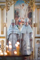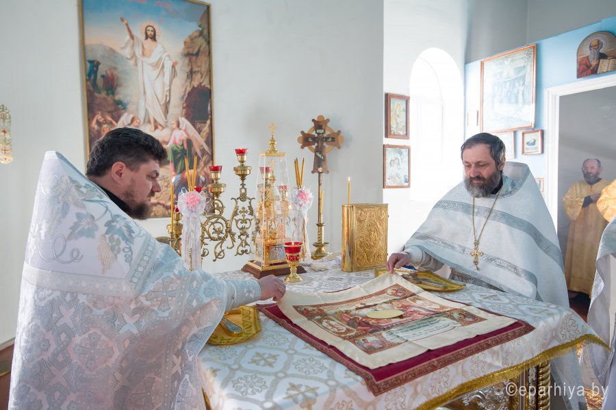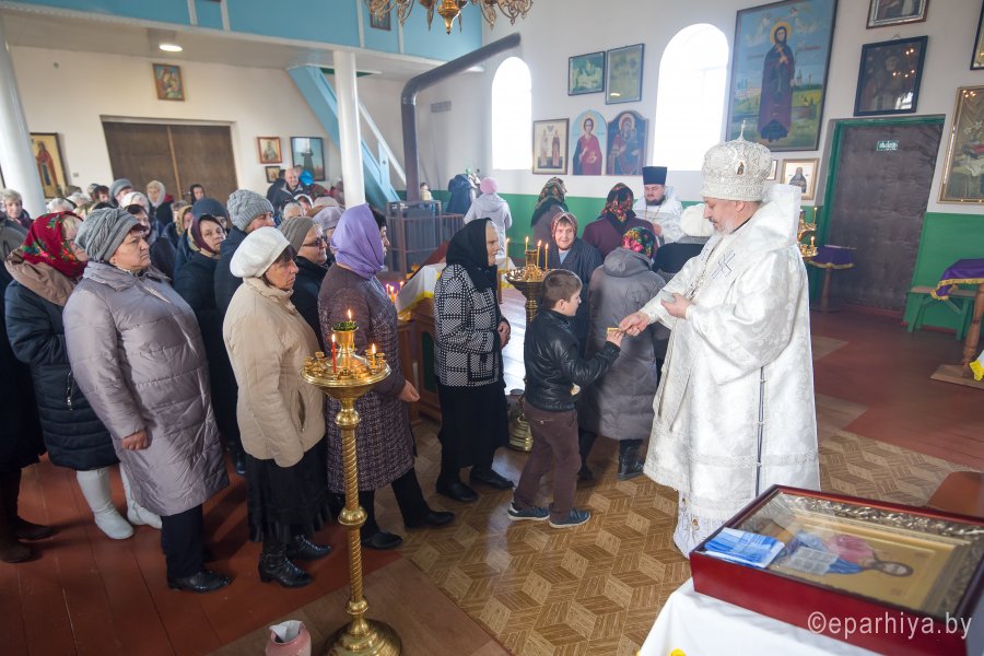 Божественную литургию в субботу 2-й седмицы Великого Поста Высокопреосвященнейший Стефан совершил в храме прп. Евфросинии Полоцкой аг.Озерщина. Высокопреосвященнейшему сослужили: секретарь Гомельской епархии протоиерей Георгий Алампиев, благочинный Речицкого округа протоиерей Алексей Пешко, настоятель прихода протоиерей Иоанн Вечорко и духовенство округа. По окончании богослужения Владыка совершил чин освящения куполов, поздравил причастников с принятием Святых Христовых Таин, обратился к молящимся со словами Архипастырского назидания. |