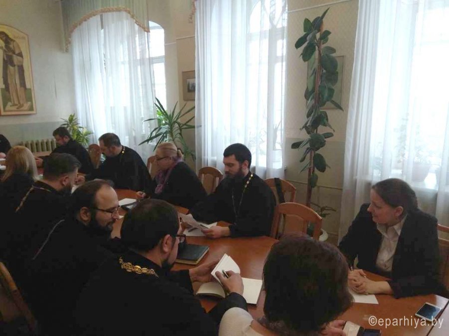 Очередное заседание Координационного совета под председательством секретаря Гомельской епархии протоиерея Георгия Алампиева состоялось в здании Гомельского епархиального управления 26 марта 2019г. В заседании принял участие Высокопреосвященнейший Стефан, архиепископ Гомельский и Жлобинский. В ходе заседания обсуждался план мероприятий Пасхального фестиваля, конференций, проводимых в Гомельской епархии, были подведены итоги празднования Дня православной книги. Также председатели отделов выступили с предложениями по проведению мероприятий, посвященных 265-летию со дня рождения преподобного Серафима Саровского, 180-летию Полоцкого собора и 100-летию со дня блаженной кончины священномученика Митрофана Астраханского. Принято решение, что темой традиционного ежегодного Международного интеллектуального турнира «Фавор» в этом году станут эти знаменательные даты. |