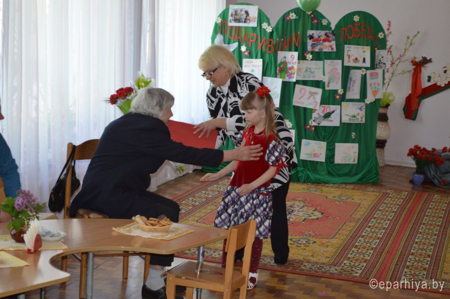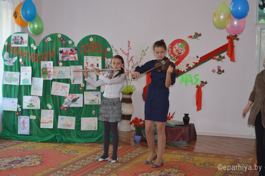 6 мая 2015 г. клирик Свято-Успенского собора в г. Речице, протоиерей Ростислав Миронович принял участие в праздничном заседании клуба «Доверие», объединяющий родителей, дети которых посещают детский сад № 9. На это заседание был приглашён ветеран Великой Отечественной войны Чекунова Антонина Антоновна, которая поделилась своими воспоминаниями о боевой юности. По окончании заседания состоялся концерт, в котором приняли участие работники детского сада со своими воспитанниками, а также воспитанники Речицкой детской школы искусств и воскресной школы Свято-Успенского собора. Протоиерей Ростислав поздравил присутствовавших в зале с наступающим праздником Победы и поблагодарил ветерана за тот подвиг, который она совершила, когда 17-летней девчонкой ушла в партизанский отряд. Пожелал всем здоровья, радости, крепости духовных и телесных сил и той божественной всепоглощающей любви, ради которой шли на ратный подвиг. |