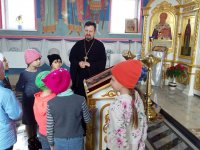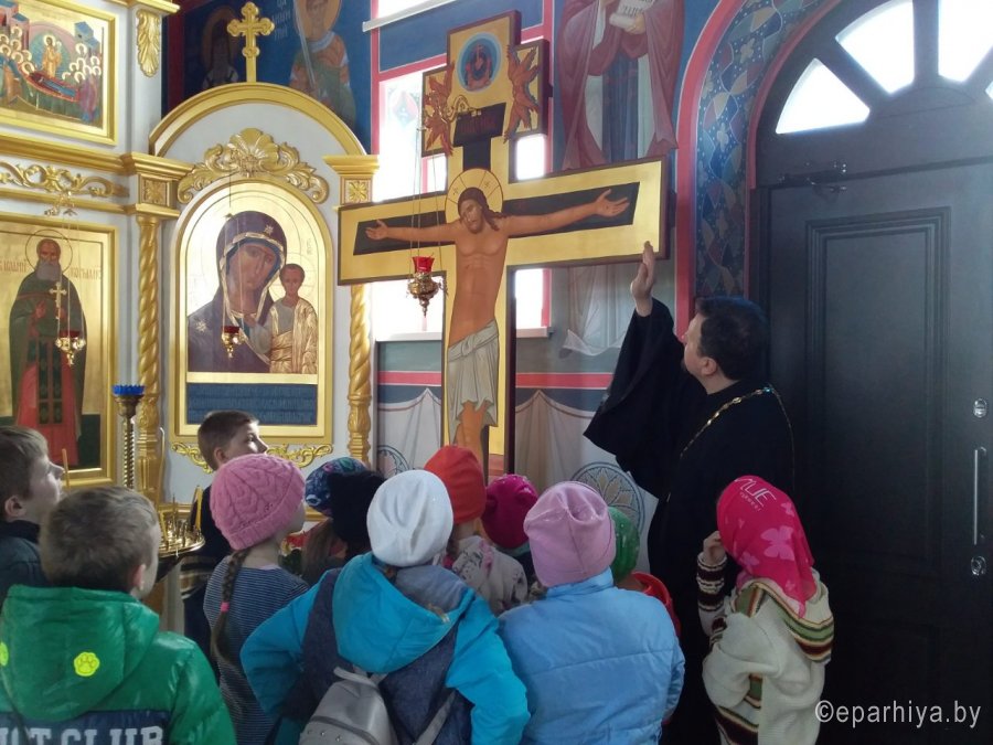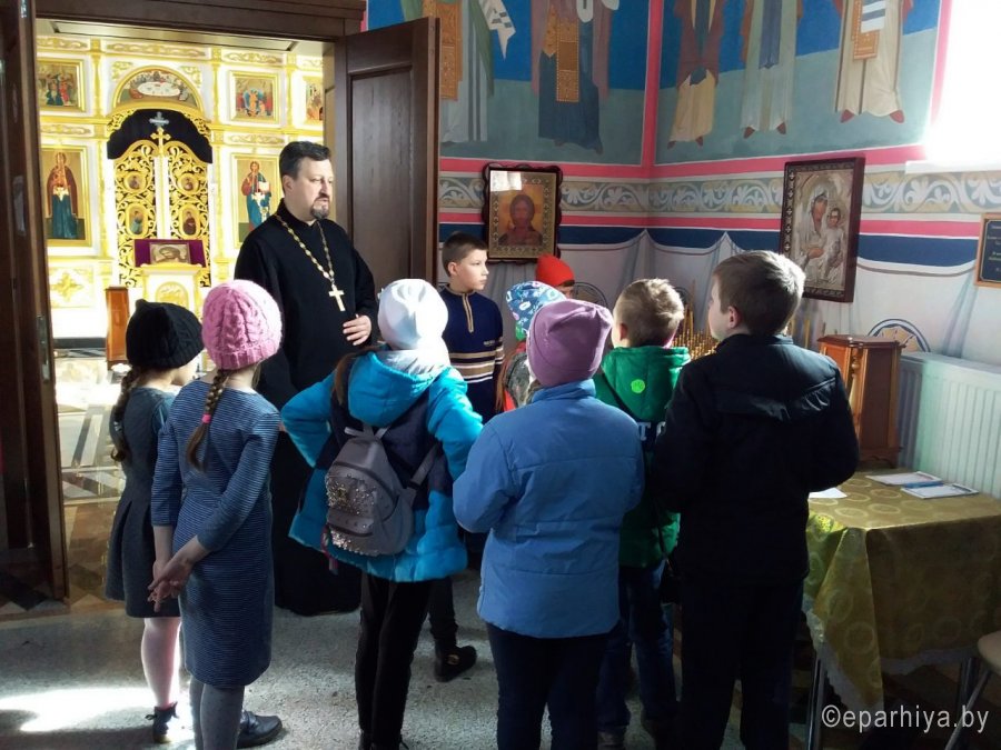 26 марта настоятель прихода протоиерей Александр Атрощенко провёл экскурсию по храму Казанской иконы Божией Матери аг. Лучин для учеников Лучинской базовой школы. Дети с интересом рассматривали настенные росписи в храме. Священник познакомил ребят с устройством храма, рассказал о жизни и подвигах белорусских святых, а также заострил внимание на том, какое важное значение имеет Великий пост в жизни православного христианина. После экскурсии, за чашкой чая, школьники поделились своими впечатлениями от посещения храма. В заключение ребята услышали краткое повествование об истории возникновения церковно-славянского языка и познакомились с правилами чтения. С огромным интересом дети попытались прочесть самые простые слова, которые часто используются в богослужебных текстах. Но самым увлекательным, пожалуй, стал конкурс рисунков на тему: "Агрогородок Лучин сегодня и завтра". Школьникам, разделившимся на две команды, было предложено нарисовать, каким они видят Лучин в настоящее время и в будущем. |