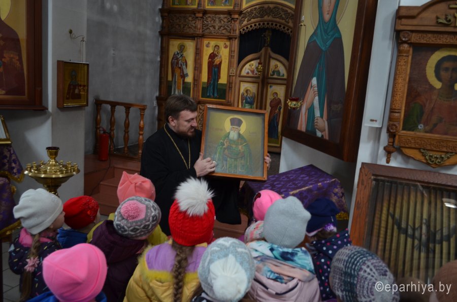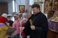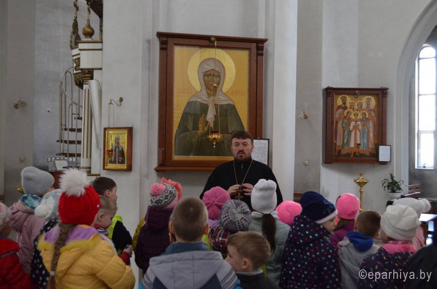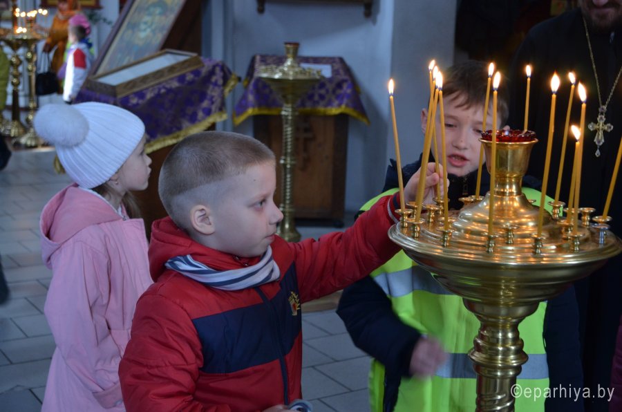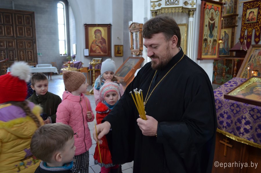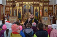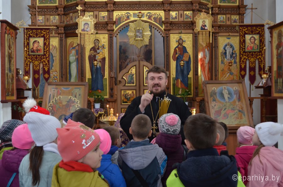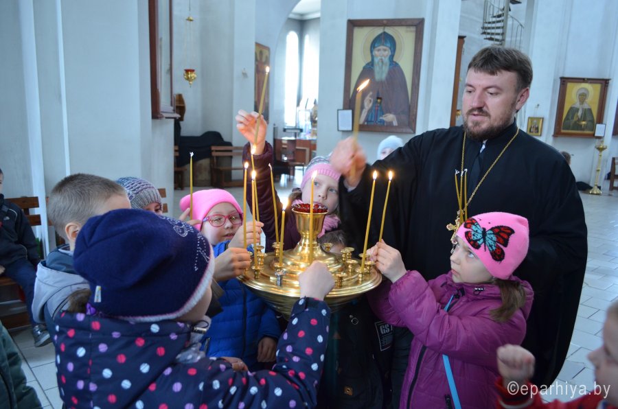 Традиционно, в дни весенних каникул, ребята из школьного оздоровительного лагеря посещают храм Преображения Господня в г. Светлогорске. 26 марта благочинный Светлогорского округа протоиерей Александр Кисель встретился с учащимися ГУО «Средняя школа №8 г. Светлогорска» и рассказал школьникам об устройстве храма, правилах поведения в нем, познакомил юных прихожан с Евангелием и иконами. В завершение встречи ребята вместе со священником зажгли свечи о здравии своих близких. |