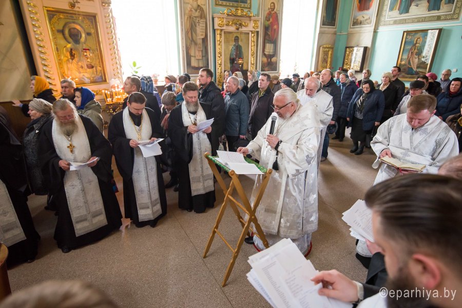 В канун родительской субботы 29 марта 2019г., Высокопреосвященейший Стефан, архиепископ Гомельский и Жлобинский возглавил вечернее богослужение и совершил Парастас (заупокойную утреню) в Петро-Павловском кафедральном соборе г.Гомеля. По окончании богослужения Владыка обратился к духовенству и прихожанам собора со словами Архипастырского назидания. Парастас или Великая панихида – заупокойная Всенощная – последование великой панихиды по всем усопшим православным христианам, совершаемое на Всенощном бдении родительских суббот (служится вечером в пятницу). |