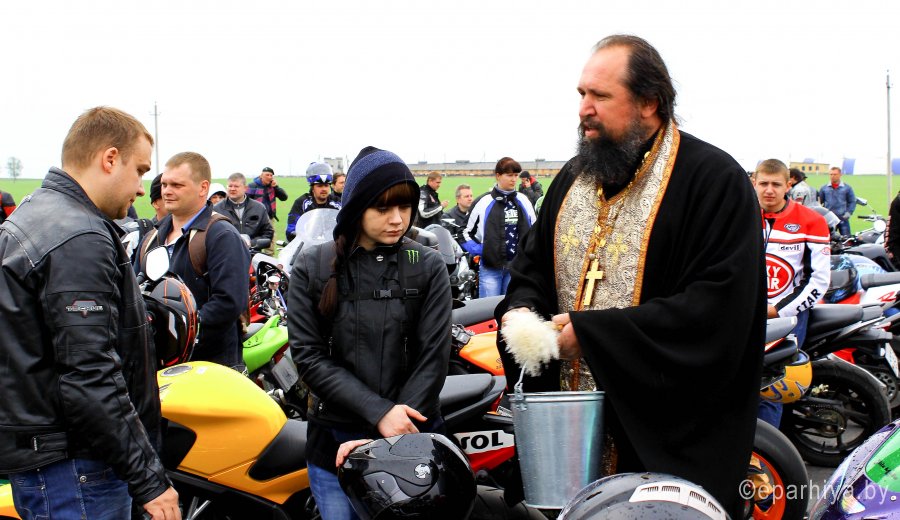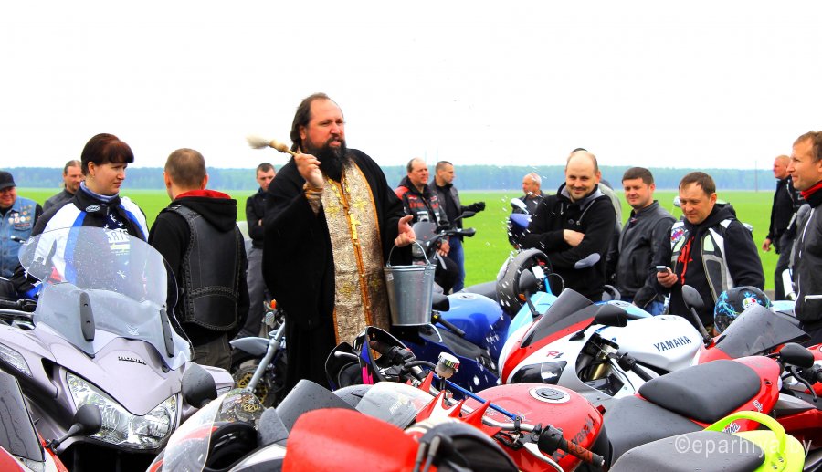 02 мая 2015 г. по приглашению клуба байкеров «Железные братья», в проходившем в Речице открытии мотосезона, принял участие настоятель Приход храма Святого Архангела Михаила д. Ровенская Слобода Речицкого района иерей Виталий Штойко. Уже второй год подряд байкеры приглашают священнослужителя на своё празднество. Иерей Виталий, на площадке перед въездом в Речицу, обратился к мотоциклистам с краткой проповедью, в которой постарался донести до любителей мототехники ту мысль, что Бог хранит на дорогах тех, кто имеет в душе Бога и борется со своими страстями. Затем священник пригласил всех желающих помолиться и освятил мотоциклы участников клуба, пожелав всем крепости духовных и телесных сил, безаварийной езды и ангела хранителя в дорогу. |
